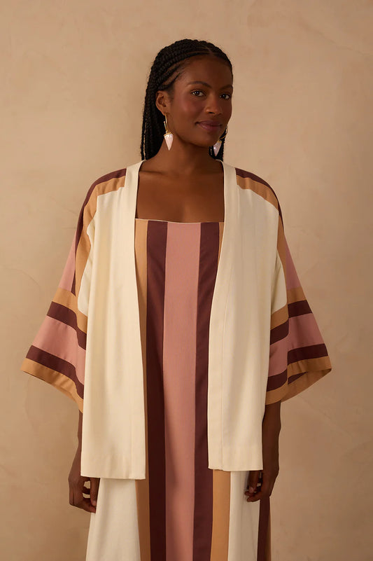 Kimono de Linho Aberto Bordado Multicolorido – Dress To