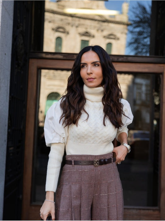Camisola de Malha com Gola Alta e Mangas Abalonadas – Scripta