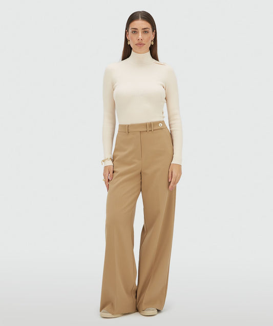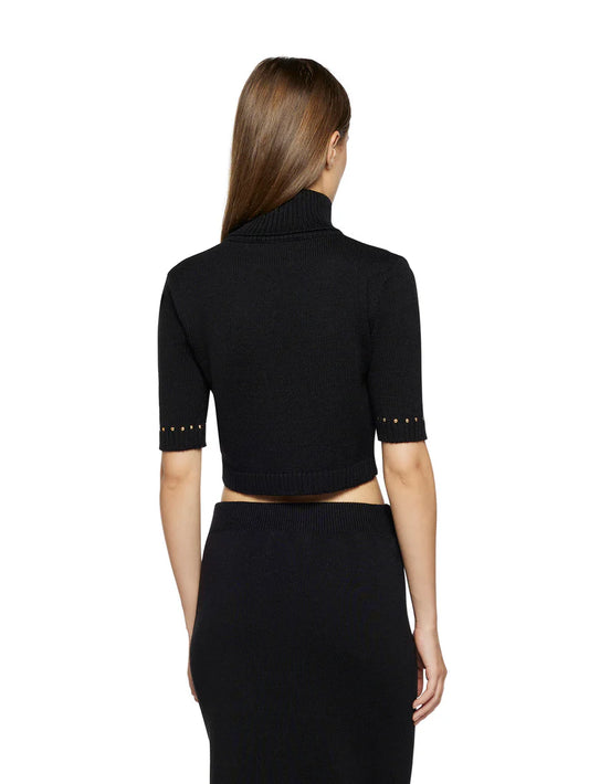 Top Gola Alta Curta em Mistura de Lã com Aplicação de Tachas - Simona Corsellini