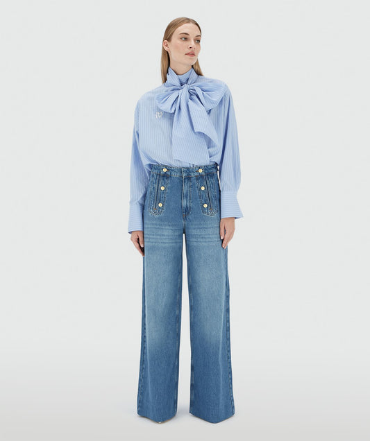 Calças Largas de Cintura Alta LIORA Azul Chambray - Josh V