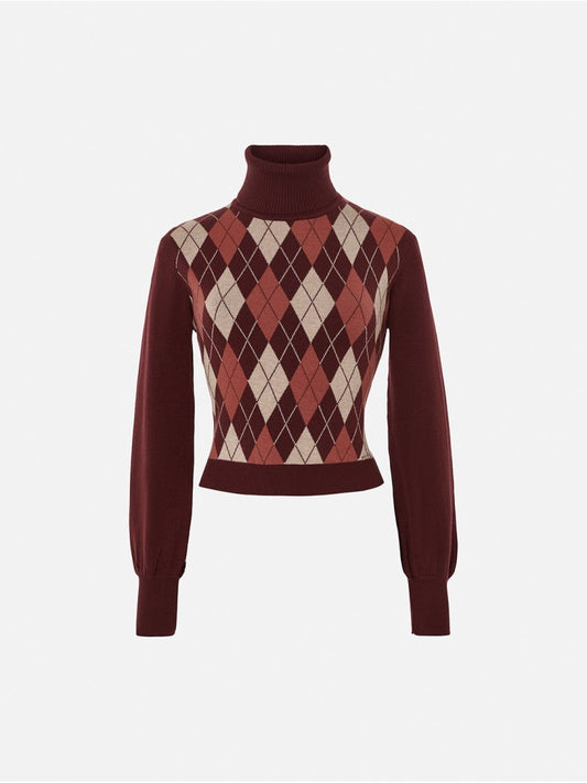 Em promoçãoCamisola de Gola Alta com Padrão de Losangos
