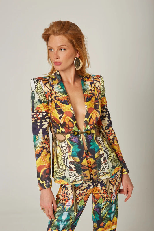 Blazer Cut Out Circulos Estampa de Borboleta - Masavi