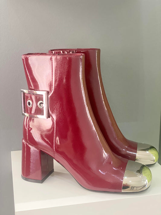 Red Patent Leather Mid-Heel Boot with Silver Detail - Jeffrey Campbell