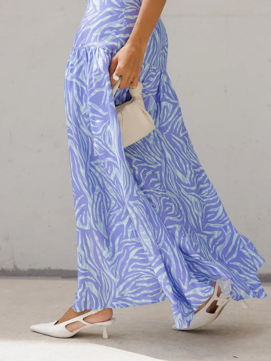 Vestido Estampado Comprido com Detalhes de Renda - Scripta