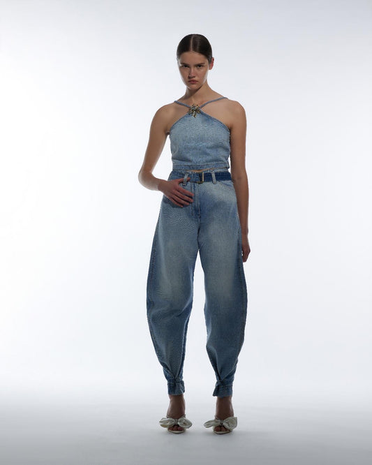 Calças em Denim com Barra Ajustada - Simona corsellini