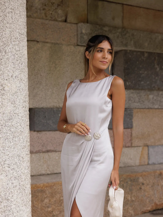 Vestido Longo com Alça Amarrar ao Pecoço - Jijil