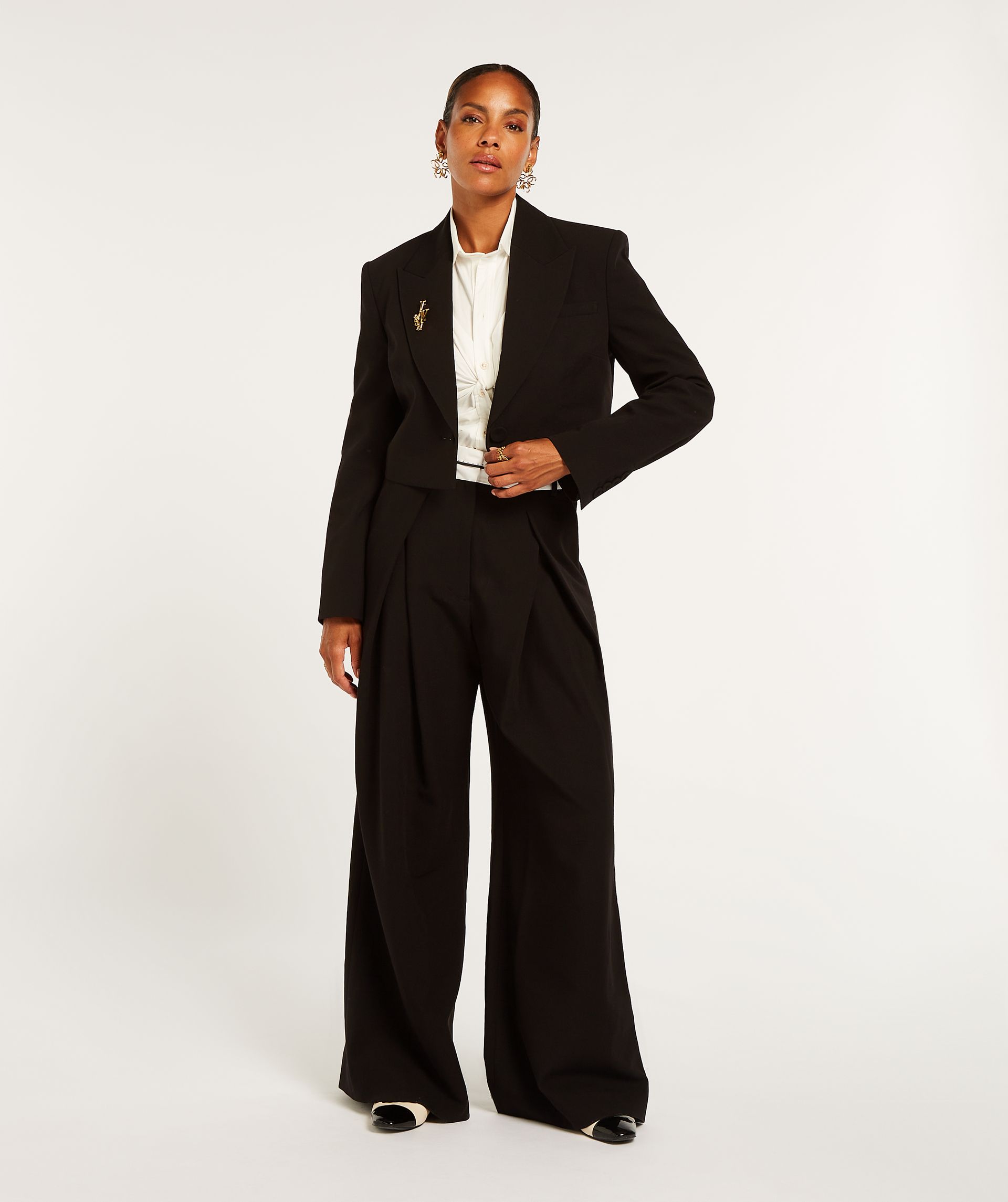 The JOSH V Andy women’s blazer in black is a must-have for any wardrobe. The tailored, cropped fit, paired with shoulder pads and a stylish button fastening, create a stylish look. The cropped blazer is made from a comfortable, recycled polyester fabric. The Andy blazer is perfect for a variety of occasions. Wear it to the office or pair it with jeans for a chic, casual look. For a complete feminine outfit, pair the black blazer with matching Coco trousers.
