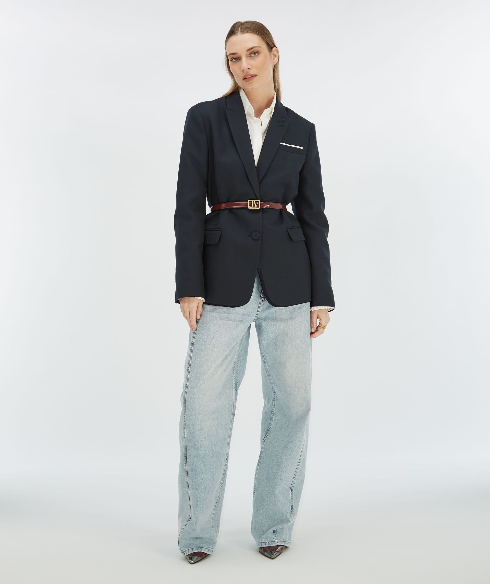 The JOSH V Danea boyfriend blazer in Dark Navy is a beautiful oversized blazer inspired by a men’s blazer from Nick (Josh’s partner). Featuring subtle shoulder pads, it is inspired by the design of a men’s blazer. Additional details such as the striped lining and chest pocket make the blazer unique. The blazer also features decorative welt pockets combined with flap pockets. This oversized blazer is a perfect addition to any spring/summer wardrobe. Create the perfect look by pairing the oversized blazer with the JOSH V Jennie blouse and straight-leg jeans.