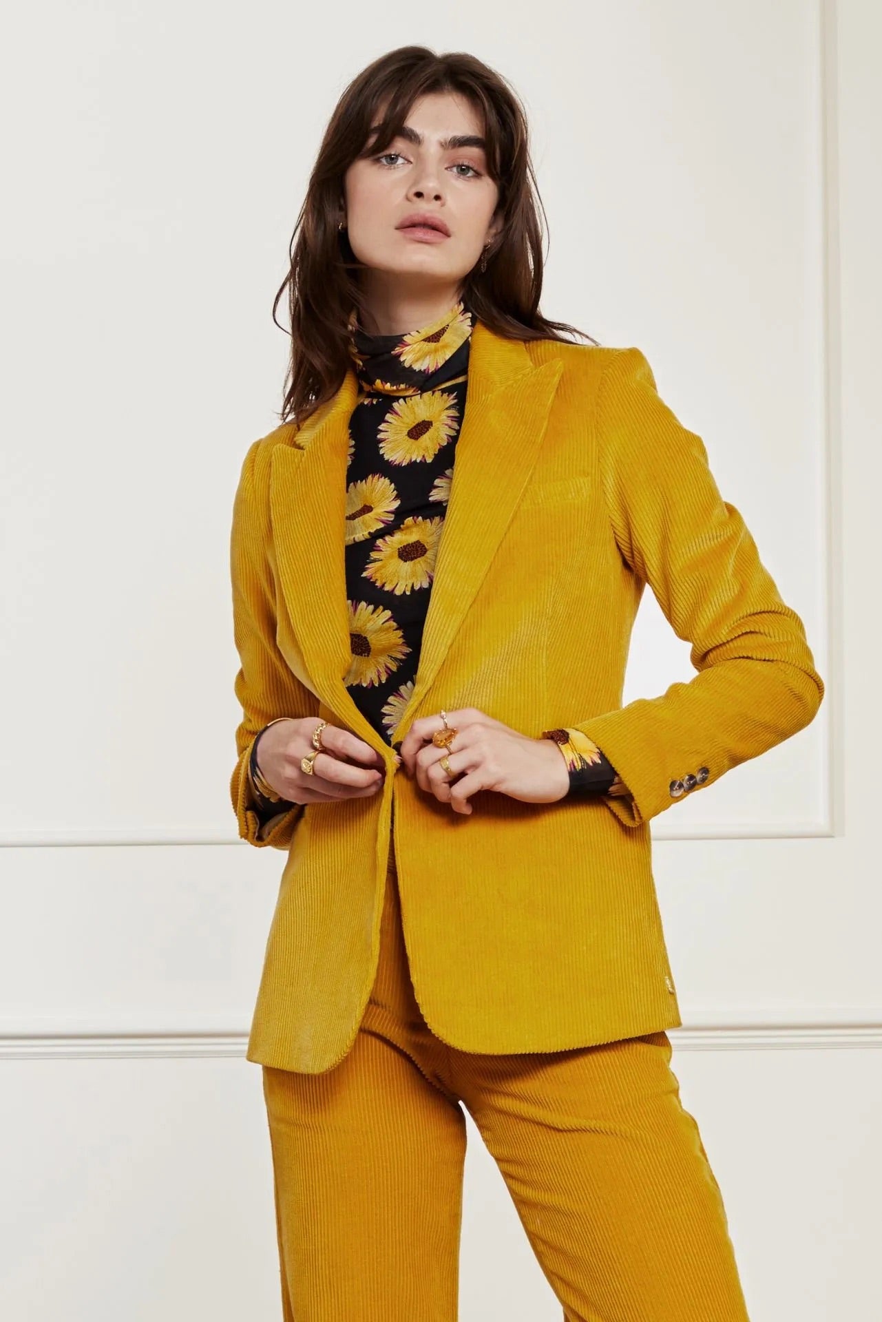 Saffron-colored fabric with detail on the inner side with the “dalmatian” pattern, exclusive to Fabienne Chapot.