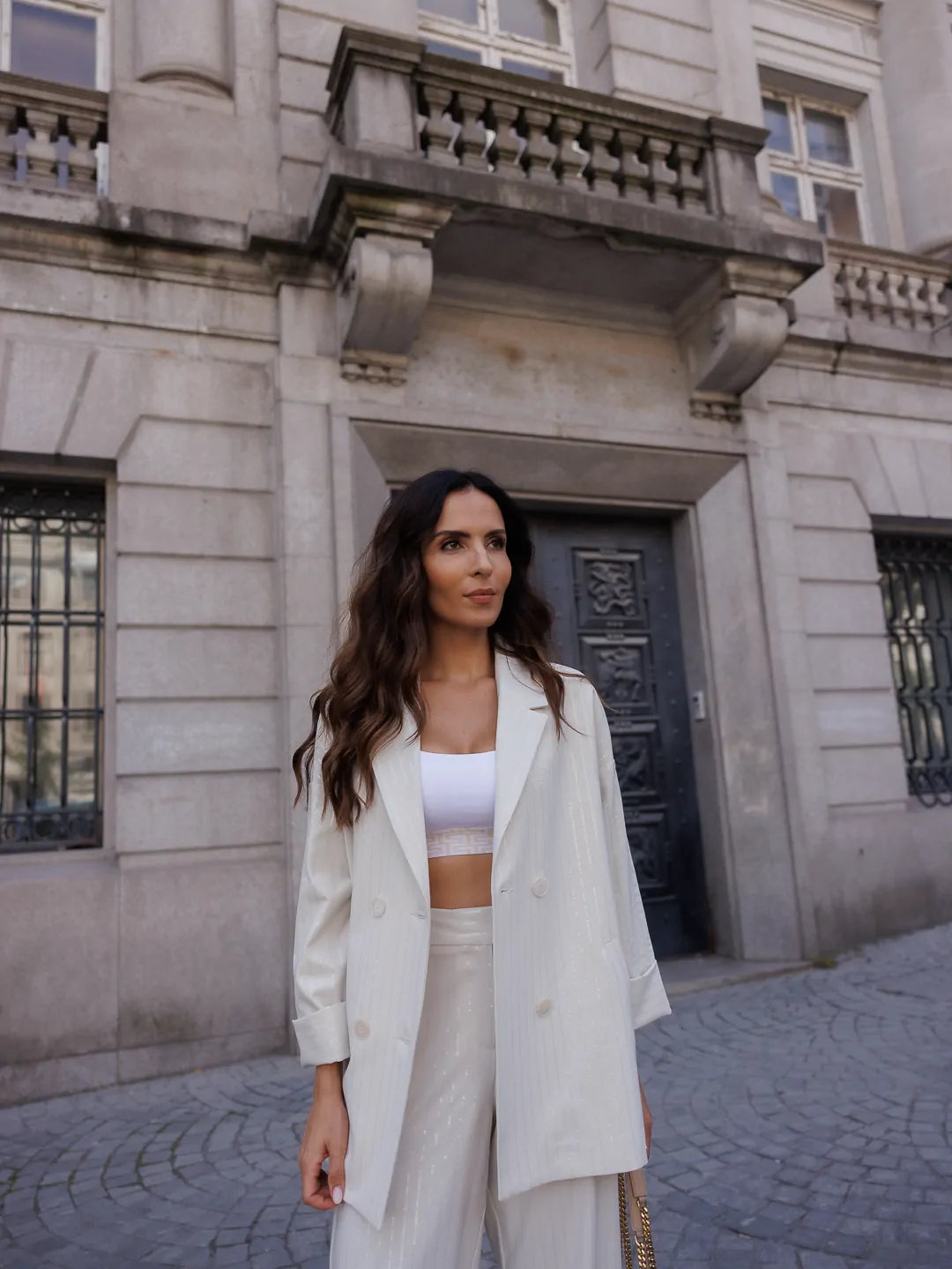 Blazer with long sleeves, collar and dropped shoulders. The piece has a loose fit and fastens with matching buttons. The piece has diagonal pockets. Folded sleeve detail. Oversized.