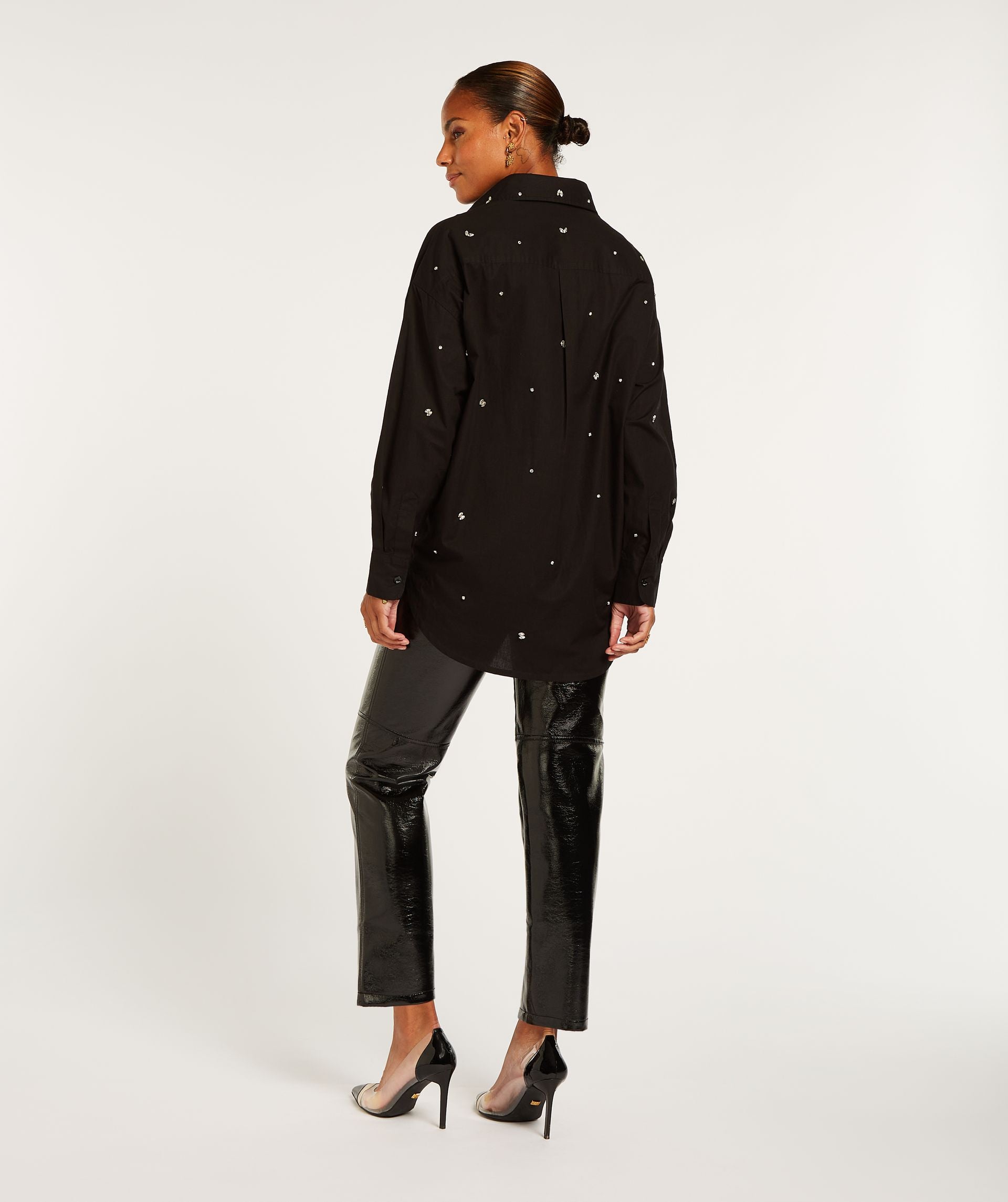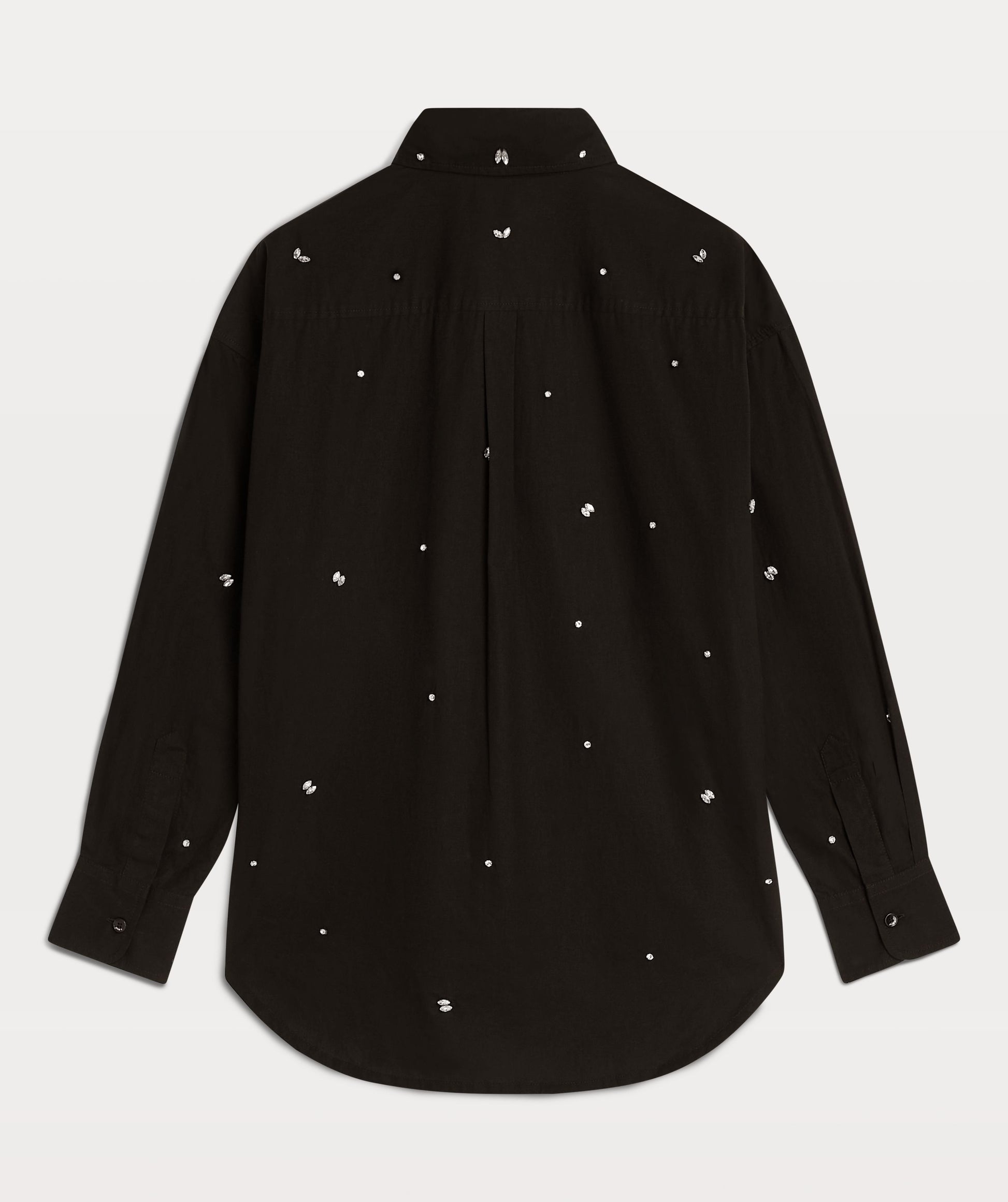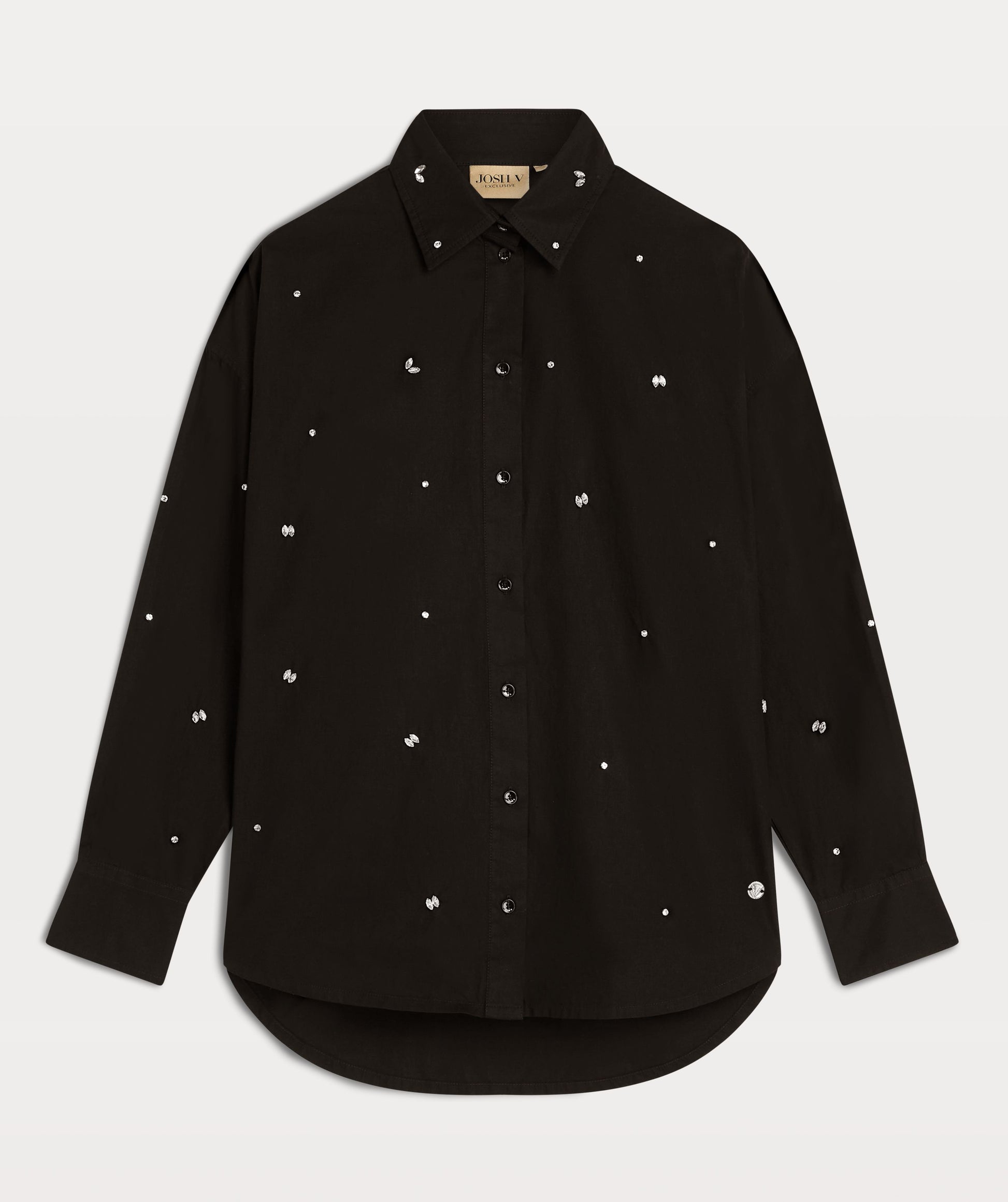 Shine bright in the JOSH V Lova women's blouse in Off White. The blouse is made from organic cotton and adorned with rhinestones. The rhinestone blouse has an oversized cut and wide sleeves. Pair the blouse with jeans and heels for the perfect everyday look.