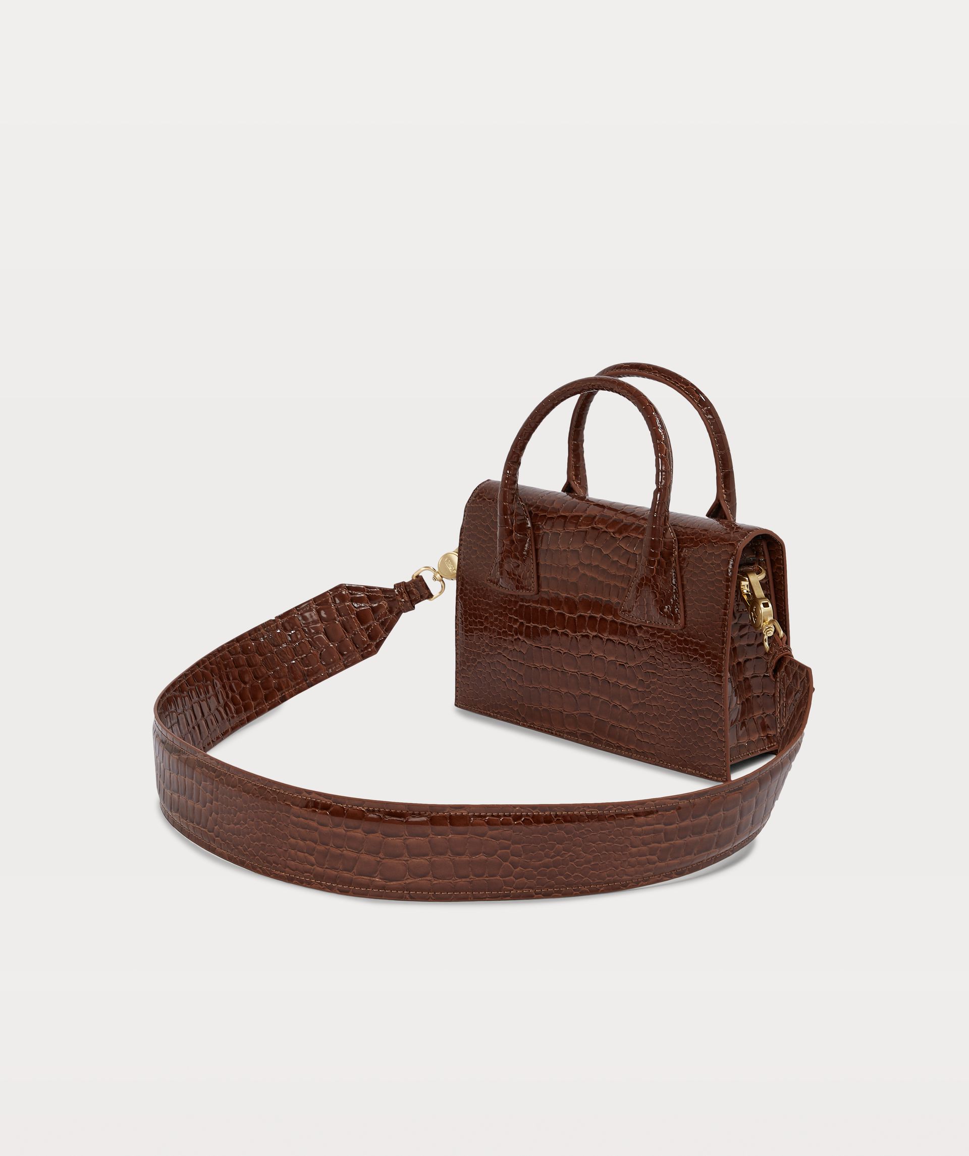 The JOSH V Yentil women's bag in Mocha Brown is crafted from faux leather with a crocodile texture. Wear this bag as a crossbody using the included strap or as a handbag. The bag closes securely with a magnetic clasp. Pair this brown crocodile bag perfectly with matching Jielle or Bobo boots.