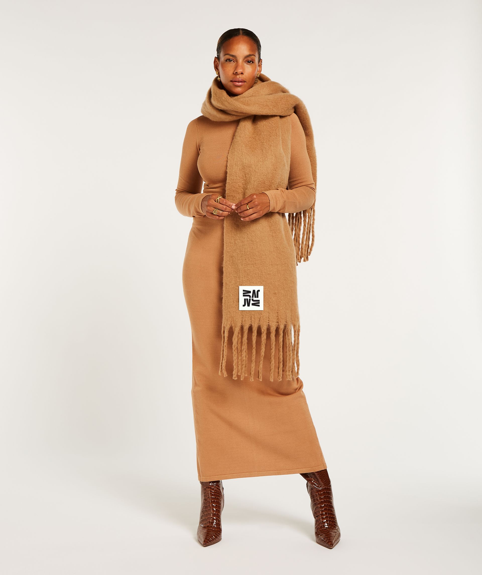 Complete your JOSH V look with the Madelyn women's scarf in Macchiato. The scarf is embellished with a JOSH V artwork pattern in the colors of the fall '24 collection. Wear the scarf around your neck, in your hair or as a unique touch on your bag.