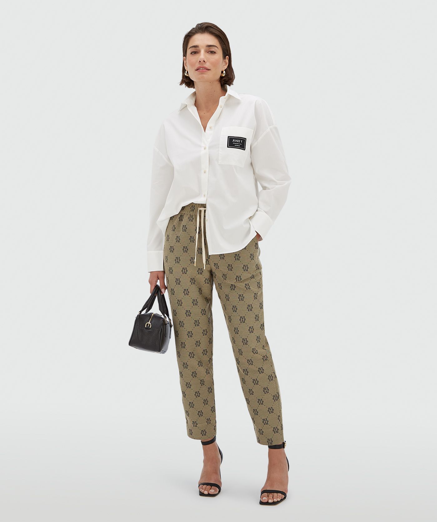 As calças JOSH V Briary para mulher em Bege Preto são confecionadas em poliéster reciclado de alta qualidade e resistência, com um estampado jacquard completo com o logótipo. As calças com o logótipo são forradas e têm uma cintura média e um corte afunilado. Além disso, a bainha comprida permite que as calças sejam alongadas. Dica de estilo: combine as calças Briary com uma blusa e uns ténis para um look versátil.