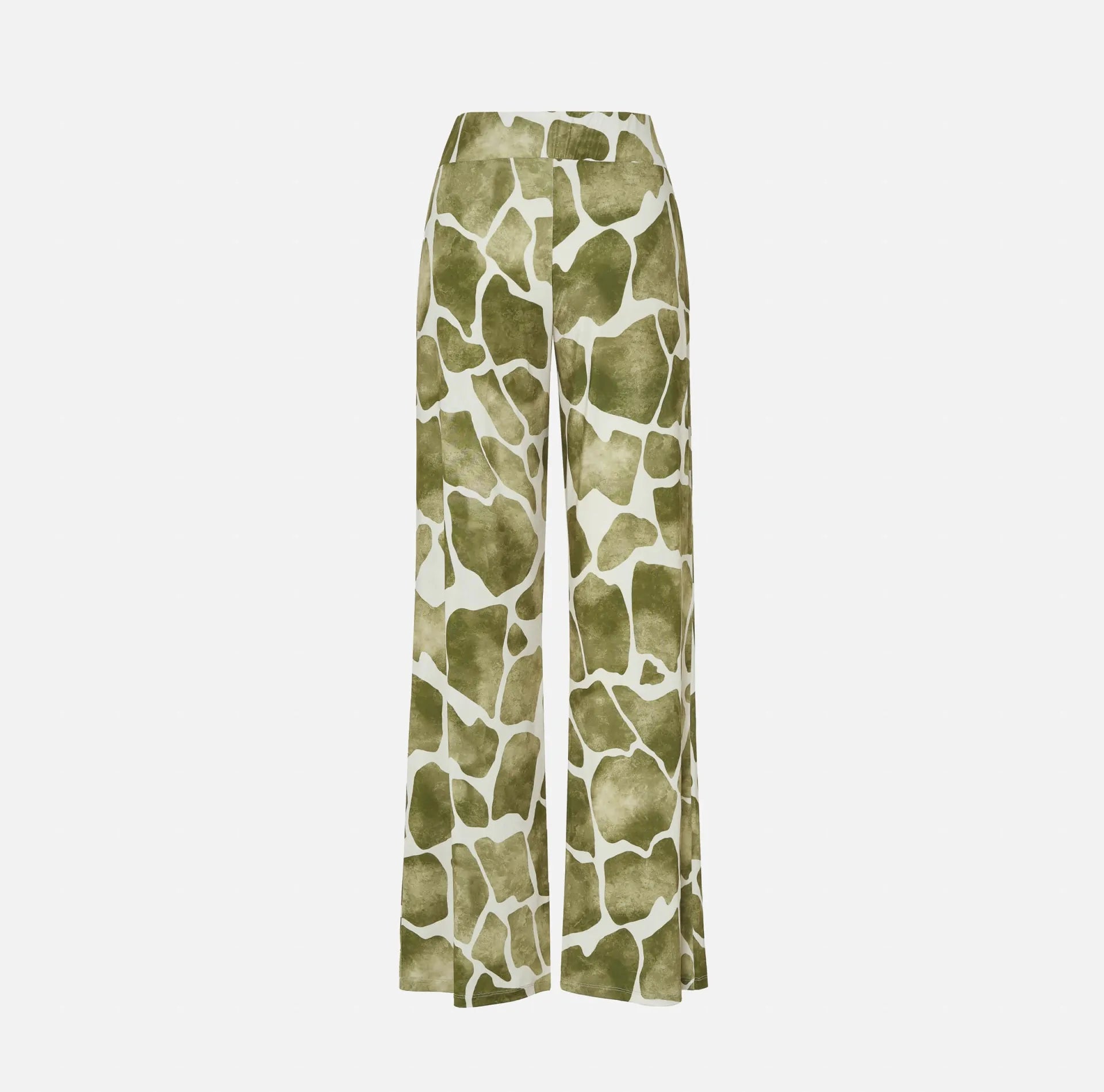 Printed long trousers with straight fitting and high waist. Fastens with elastic at the waist.