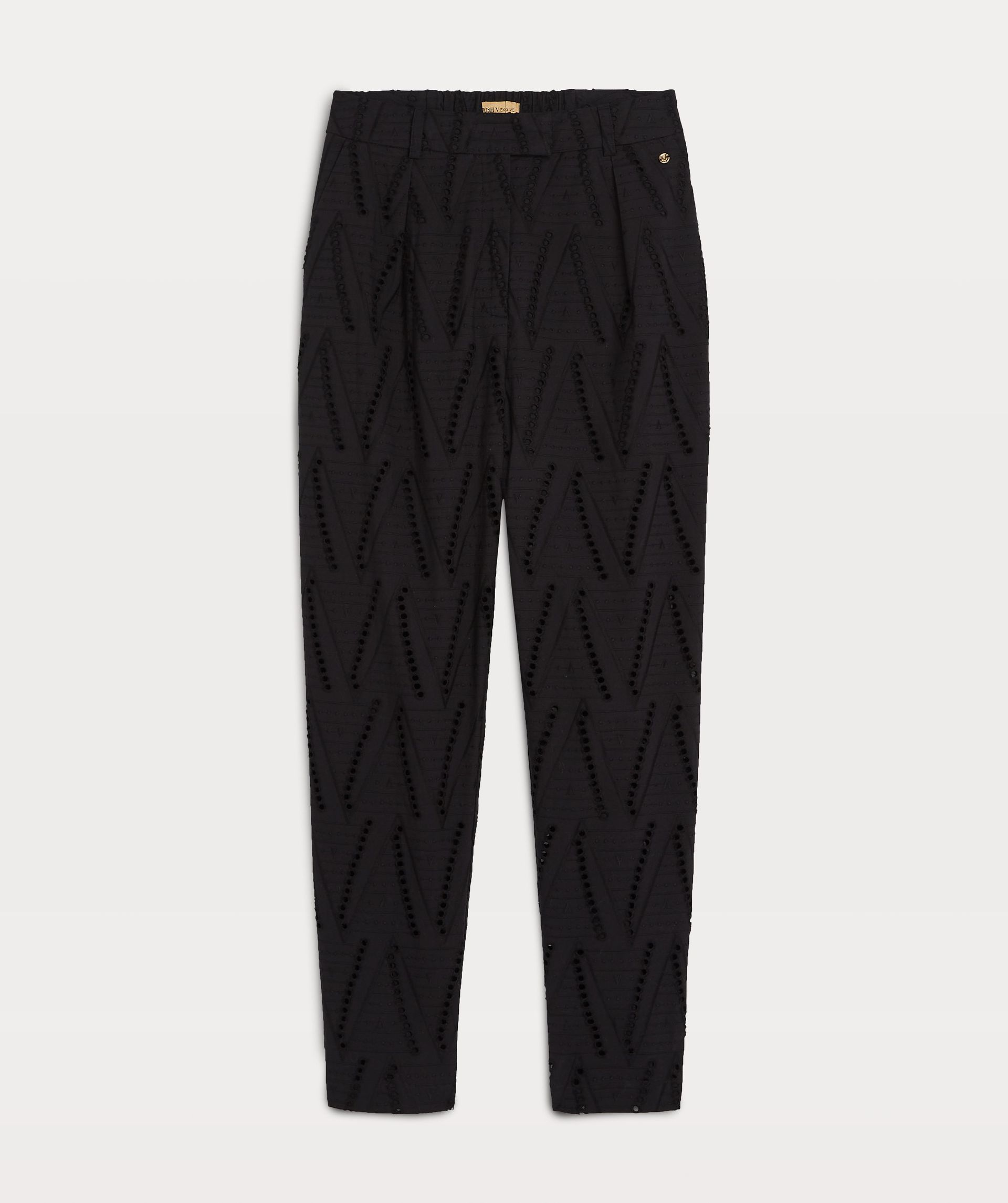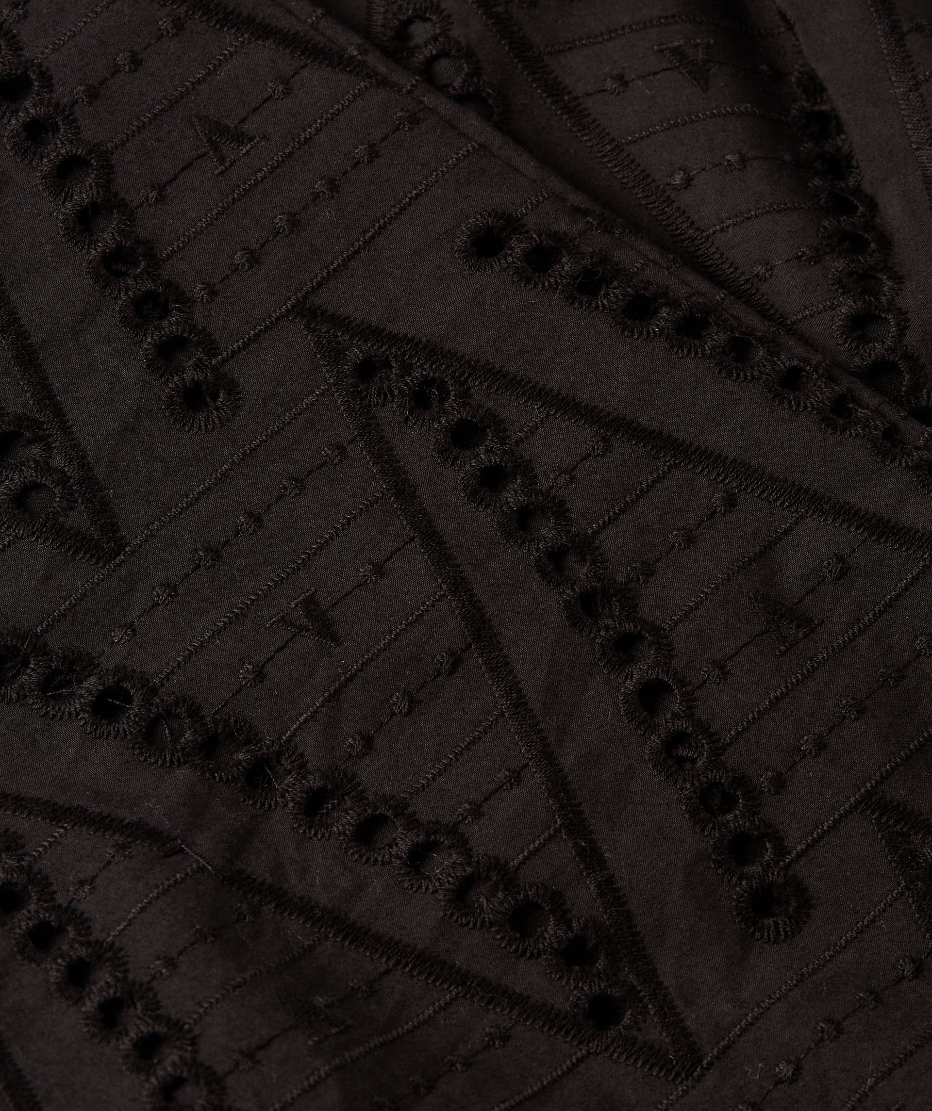 The JOSH V Leyesa women’s trousers in black are a must-have this fashion season. Pair the black trousers and broderie anglaise with the matching Dilara blouse for a beautiful co-ord set. Style the look with gold accessories and sandals for a versatile look. The trousers are lined above the knee to prevent see-through and feature elastic at the back of the waist.