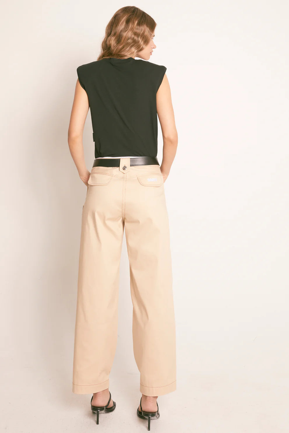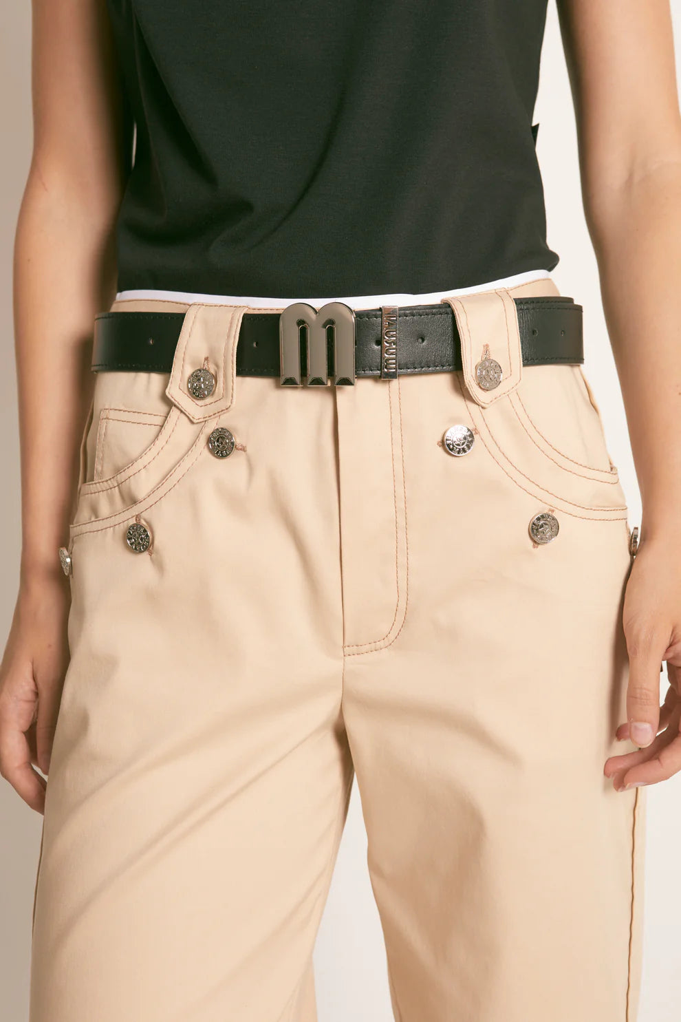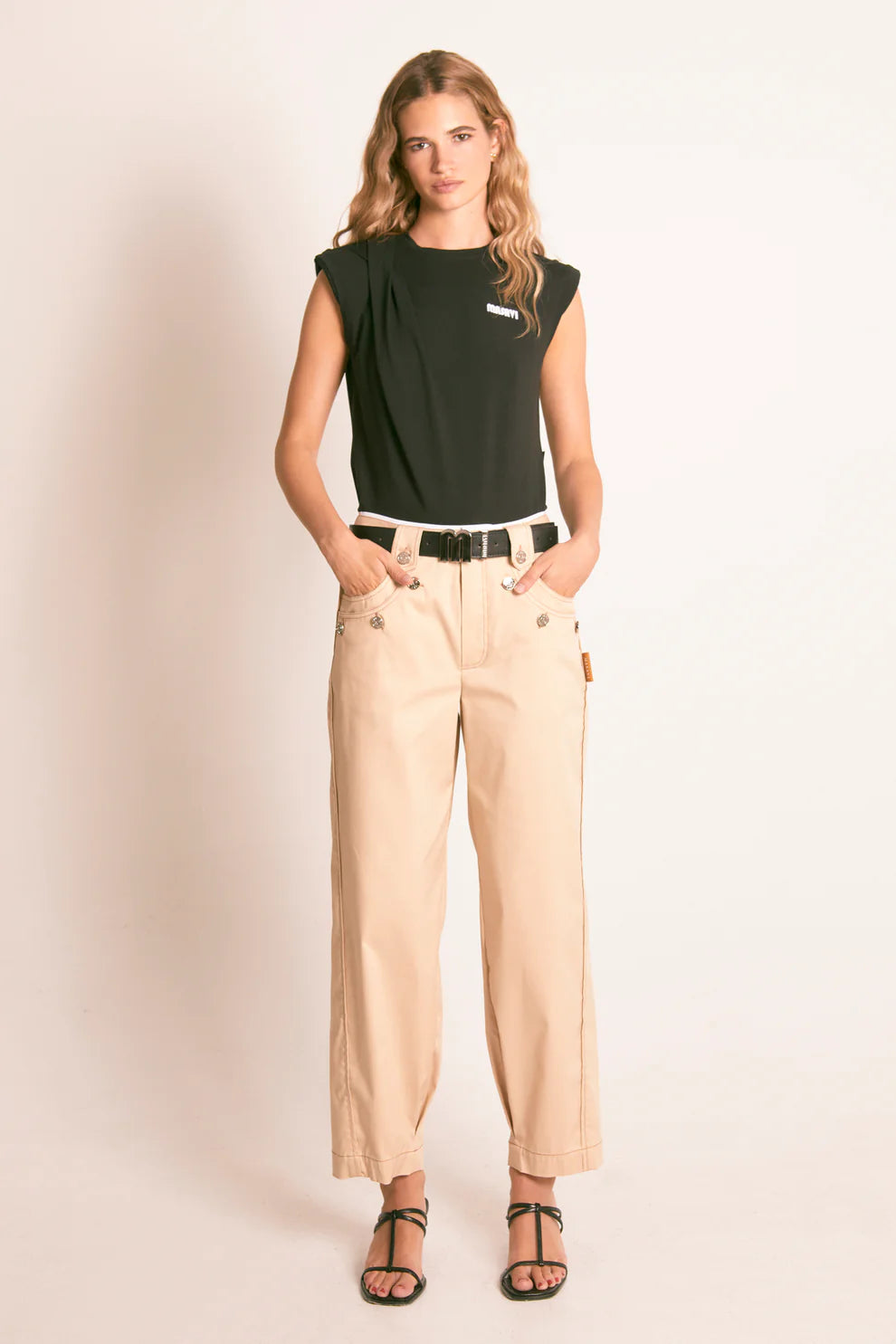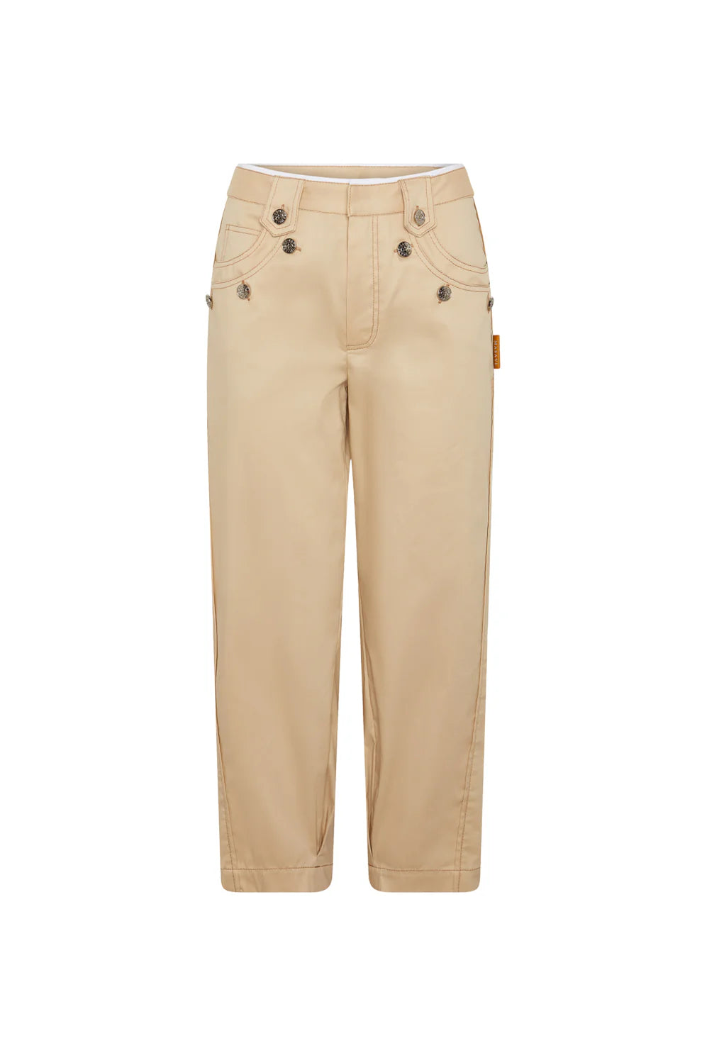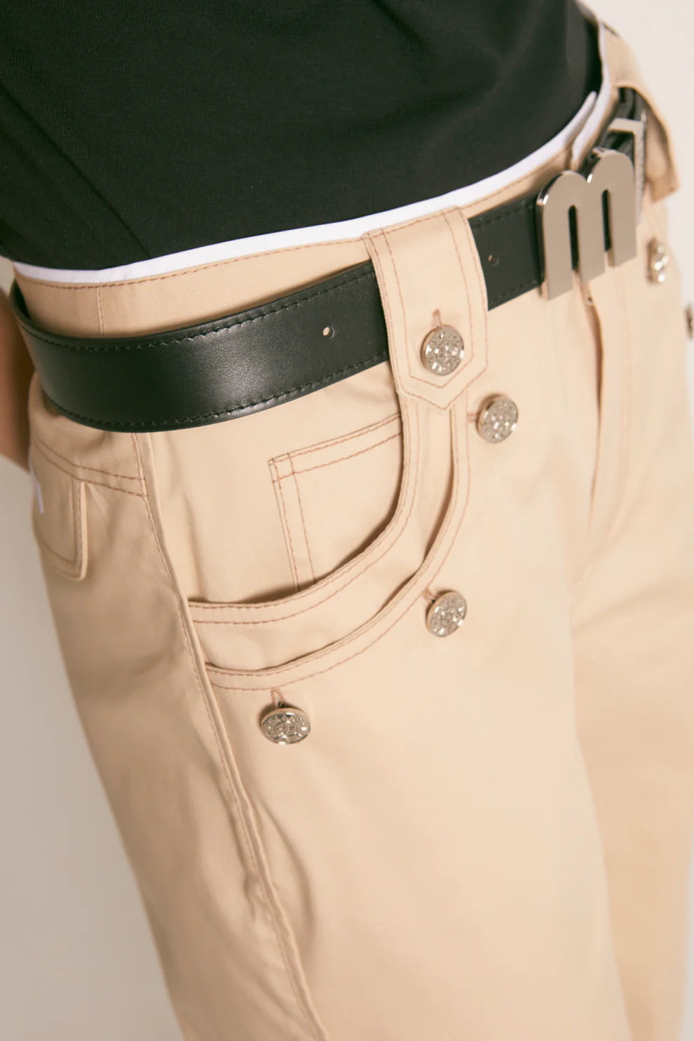 Camel trousers with a cargo-inspired design that incorporates decorative button details on the front that add a distinctive and elegant touch. Their boyfriend cut ensures comfort and stylizes the figure.
