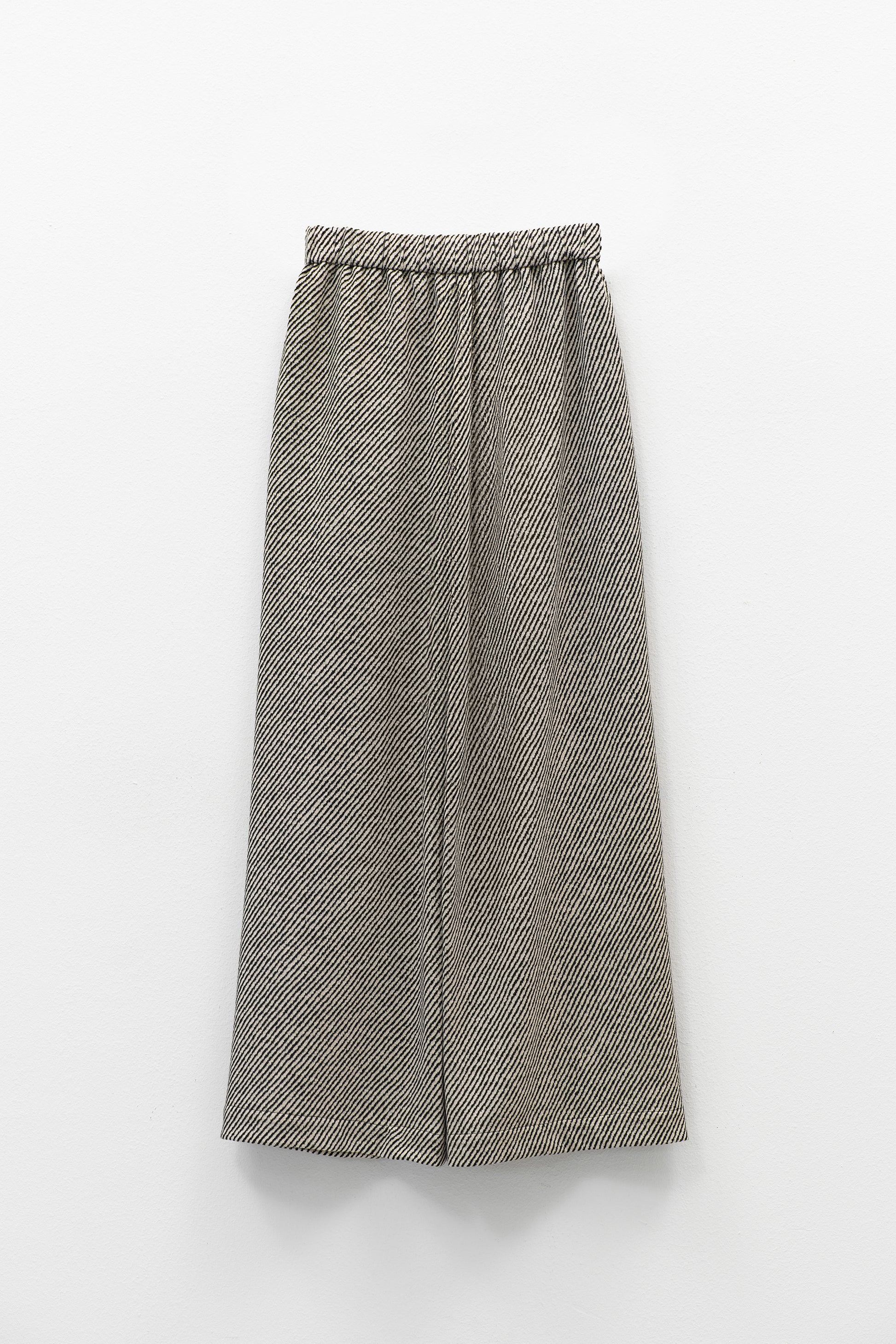 Calças culotte com padrão de riscas finas, perfeitas para um look moderno e confortável. O design fluido com cintura elástica oferece liberdade de movimento e um caimento elegante. Ideais para conjugar com malhas, camisas ou peças em pele, adaptando-se tanto ao dia a dia como a looks mais sofisticados.