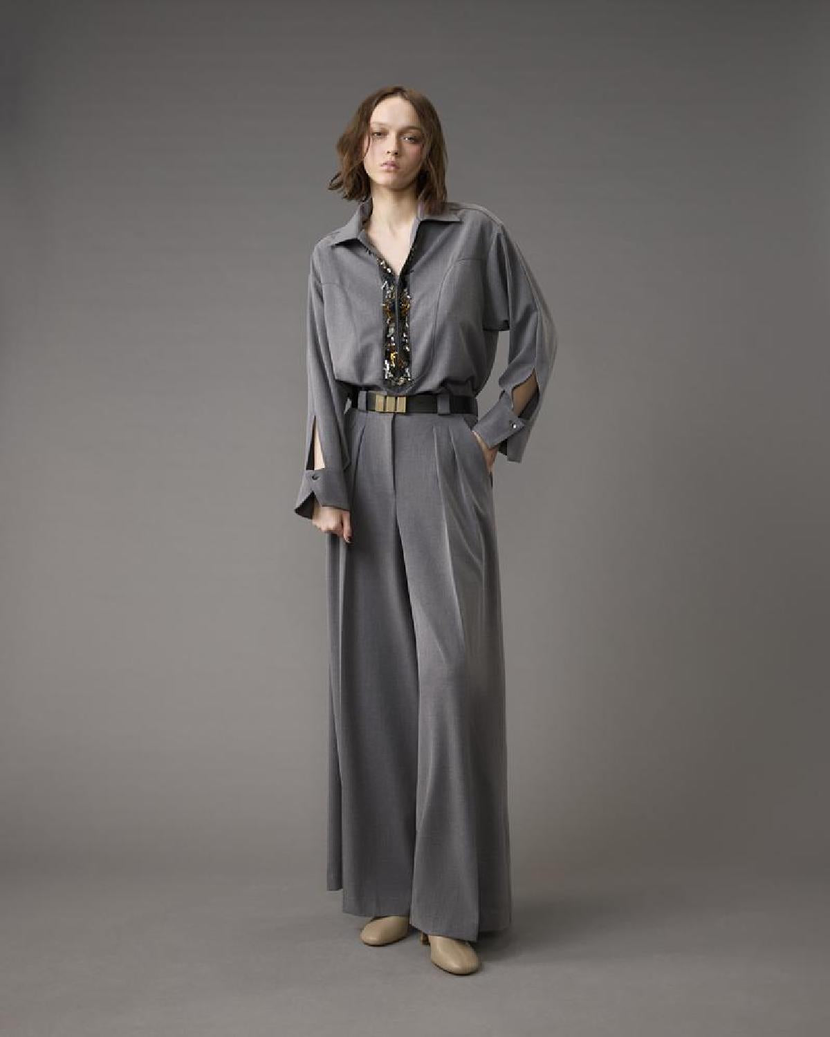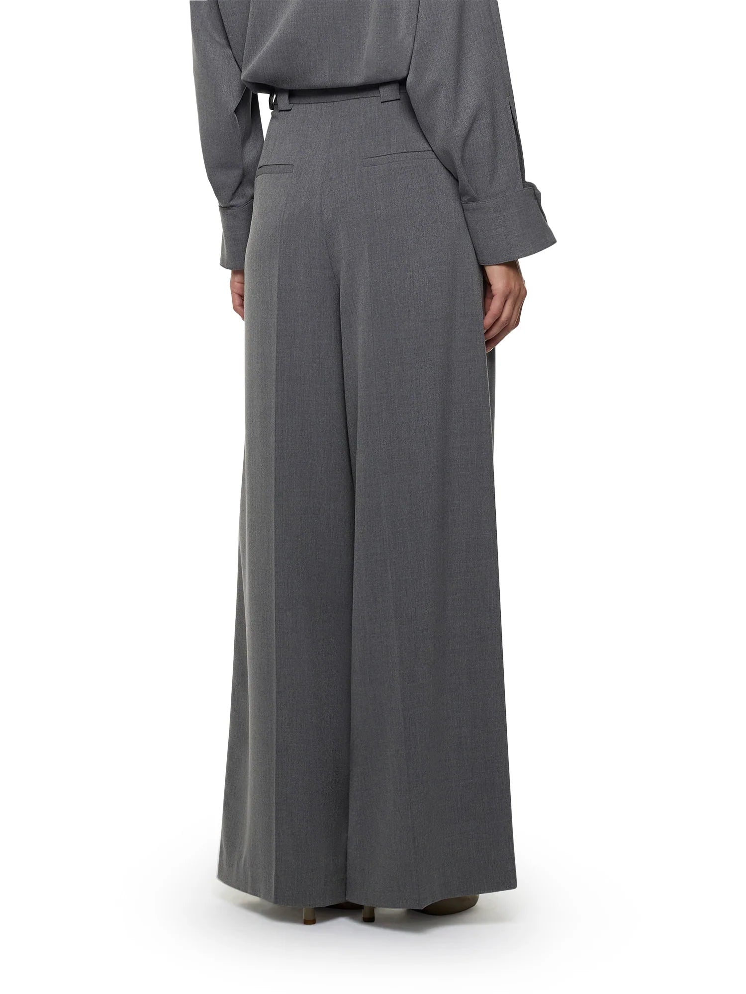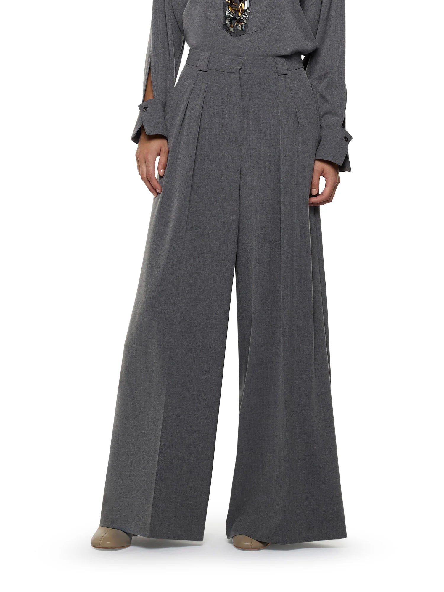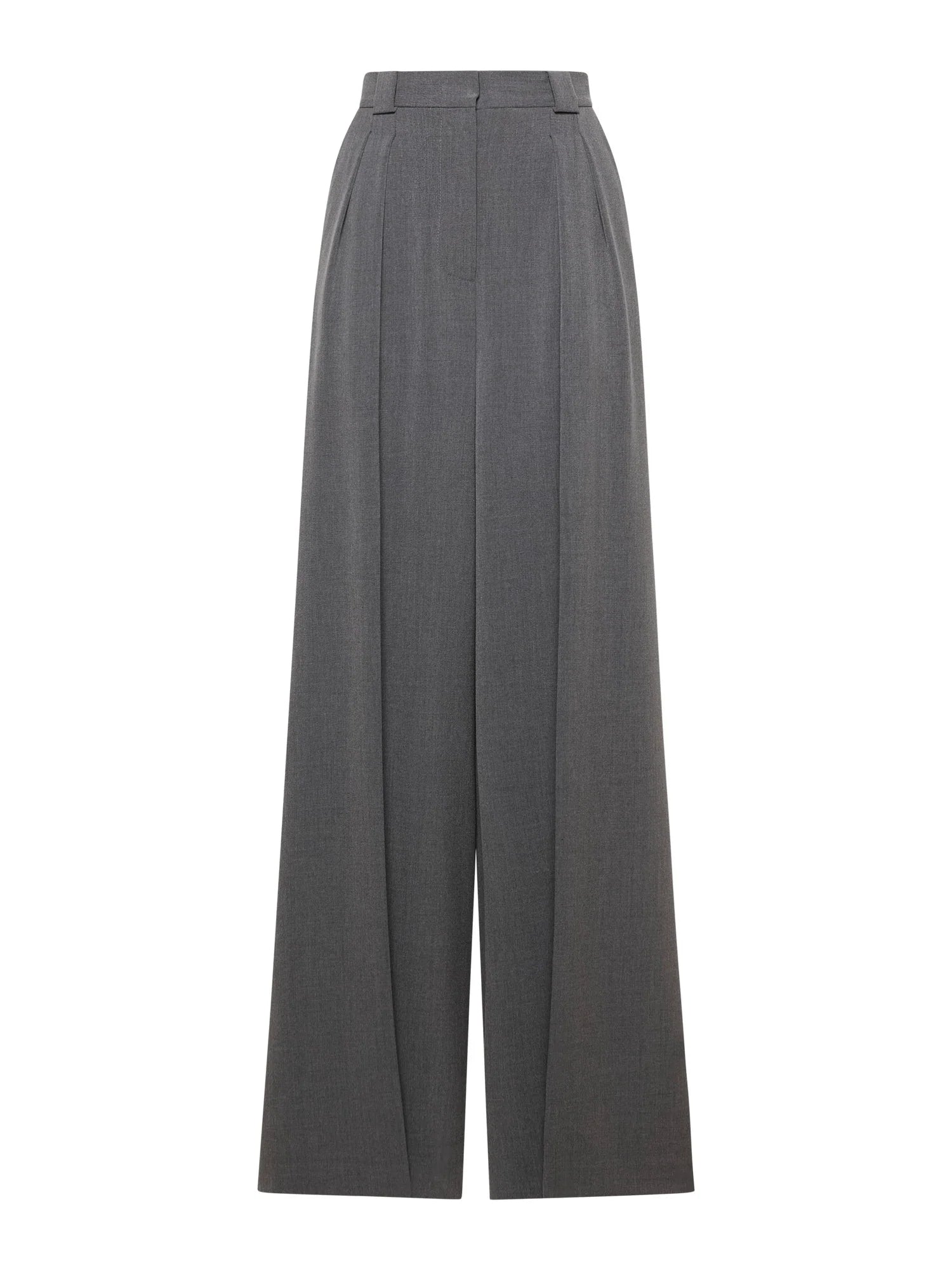 Confeccionadas em tela transition, apresentam um corte wide leg fluido com pregas duplas frontais que garantem movimento e sofisticação.