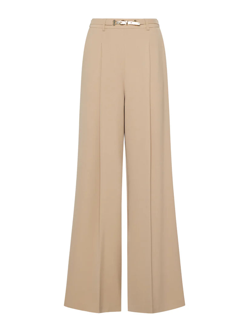 Wide Leg Trousers with Gold Plated Metal Buckle - Simona Corsellini