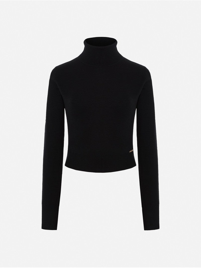Camisola de malha Scripta com gola alta e corte curto, perfeita para compor looks elegantes e confortáveis. Confeccionada em tricot macio e elástico, oferece um toque suave na pele e um caimento impecável. O design minimalista realça a silhueta e torna-a uma peça essencial para a temporada.