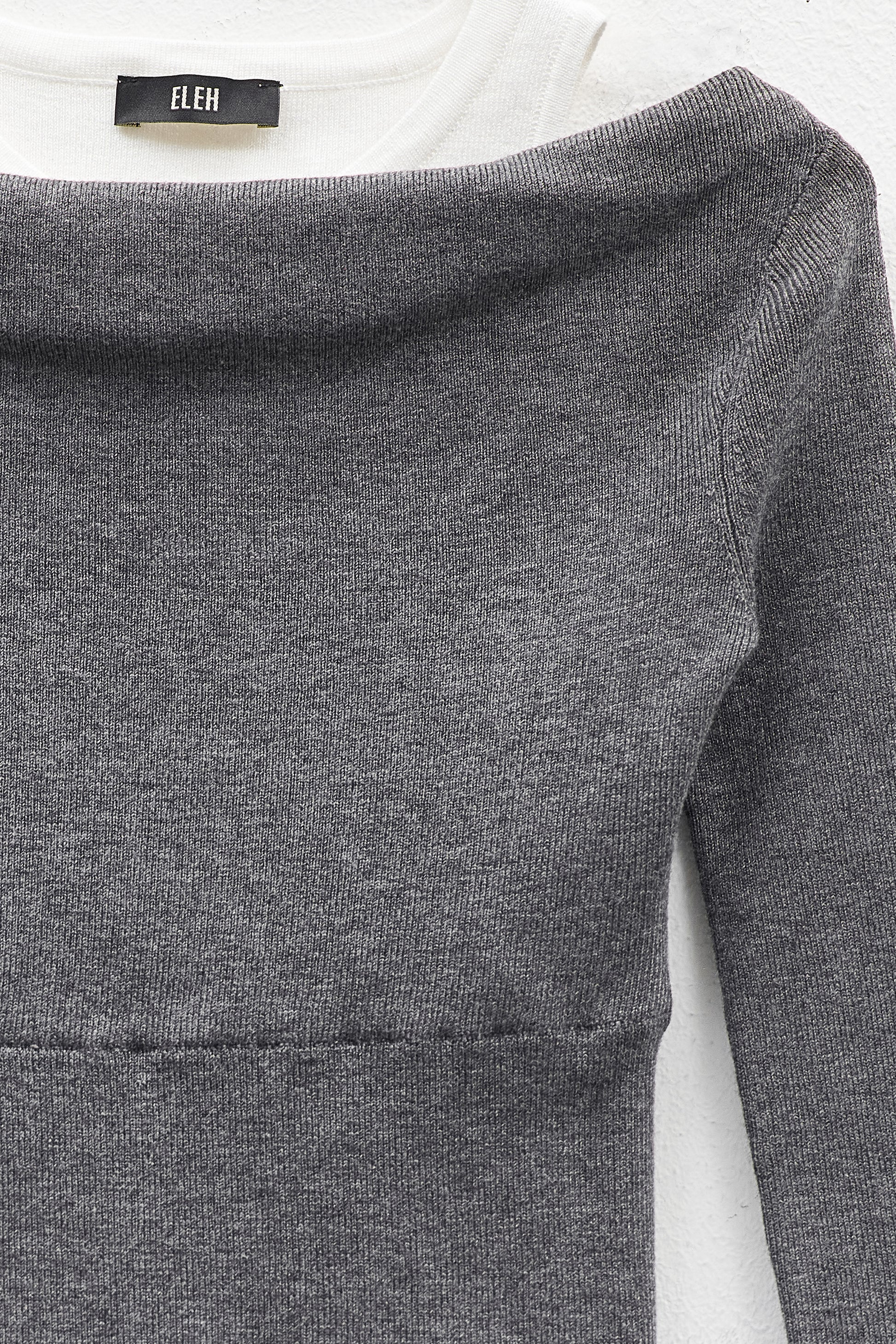 Camisola de malha ELEH com decote off shoulder para um look feminino e moderno. Silhueta mais curta, perfeita para combinar com jeans de cintura subida ou saias. Confortável, versátil e ideal para criar looks elegantes no dia a dia.