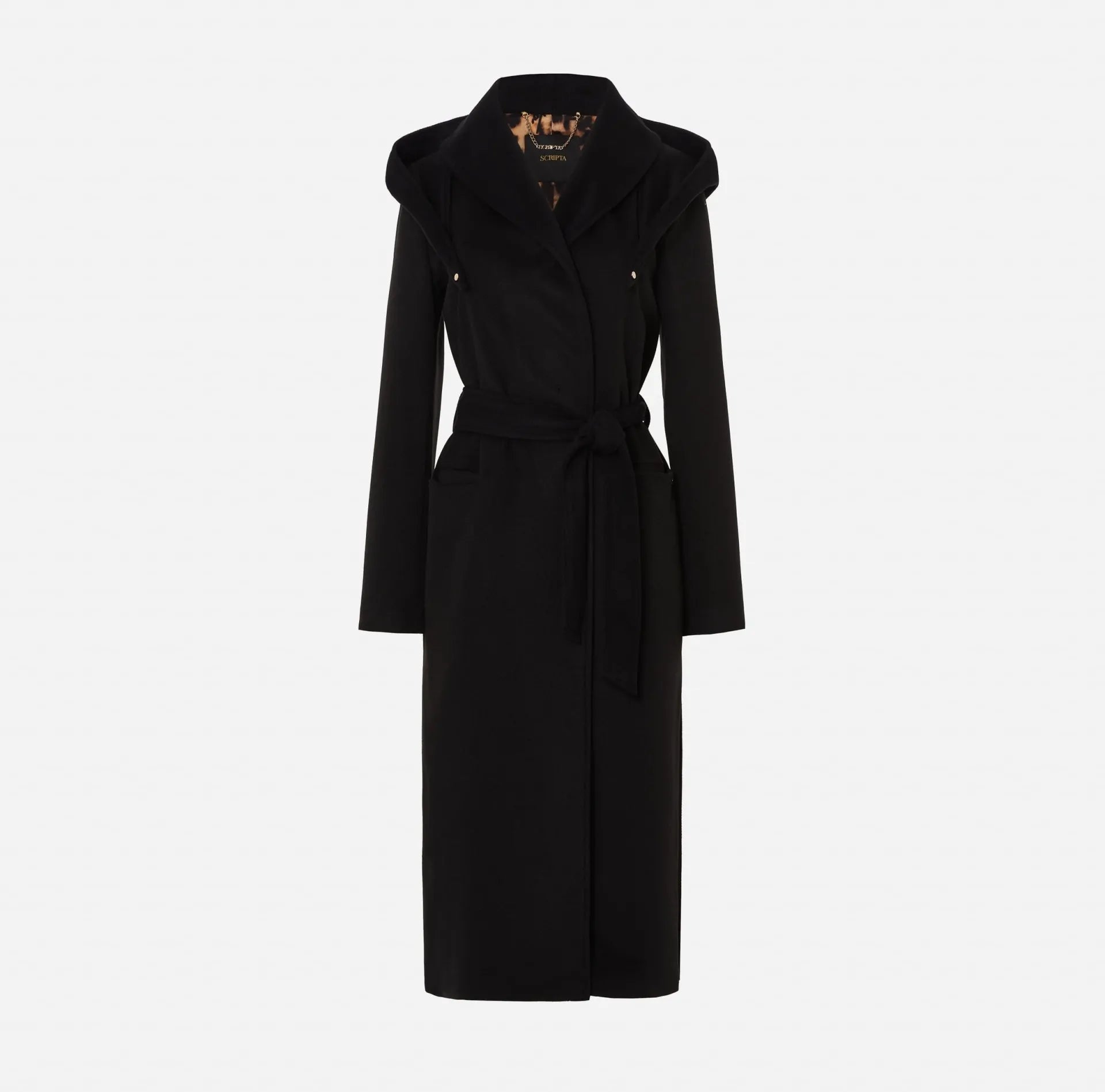 Elegante e intemporal, este casaco comprido combina sofisticação e funcionalidade num design moderno. O tecido encorpado e macio proporciona conforto e estrutura, enquanto o cinto ajustável marca a cintura e realça a silhueta. O capuz removível adiciona versatilidade — perfeito para um look casual chic ou para composições mais formais.