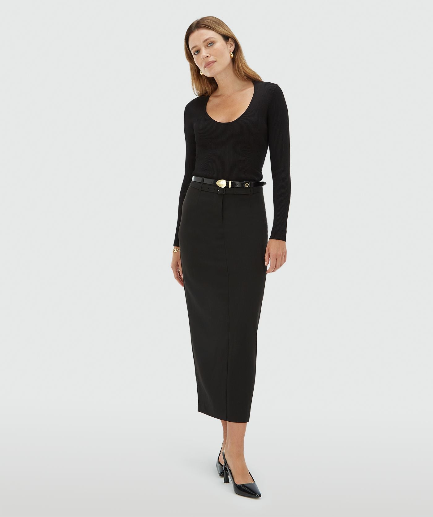 O cinto feminino JOSH V Linna na cor preta é realçado na frente por um lindo detalhe dourado que imediatamente confere um toque de elegância ao seu look. O cinto pode ser usado na cintura ou nos quadris e é um complemento elegante para diversos looks. Combine-o, por exemplo, com uma blusa de gola alta preta e uma saia midi na cor camelo para um look outonal quente e elegante. Ele também fica deslumbrante quando combinado com um blazer oversized e calças de couro.