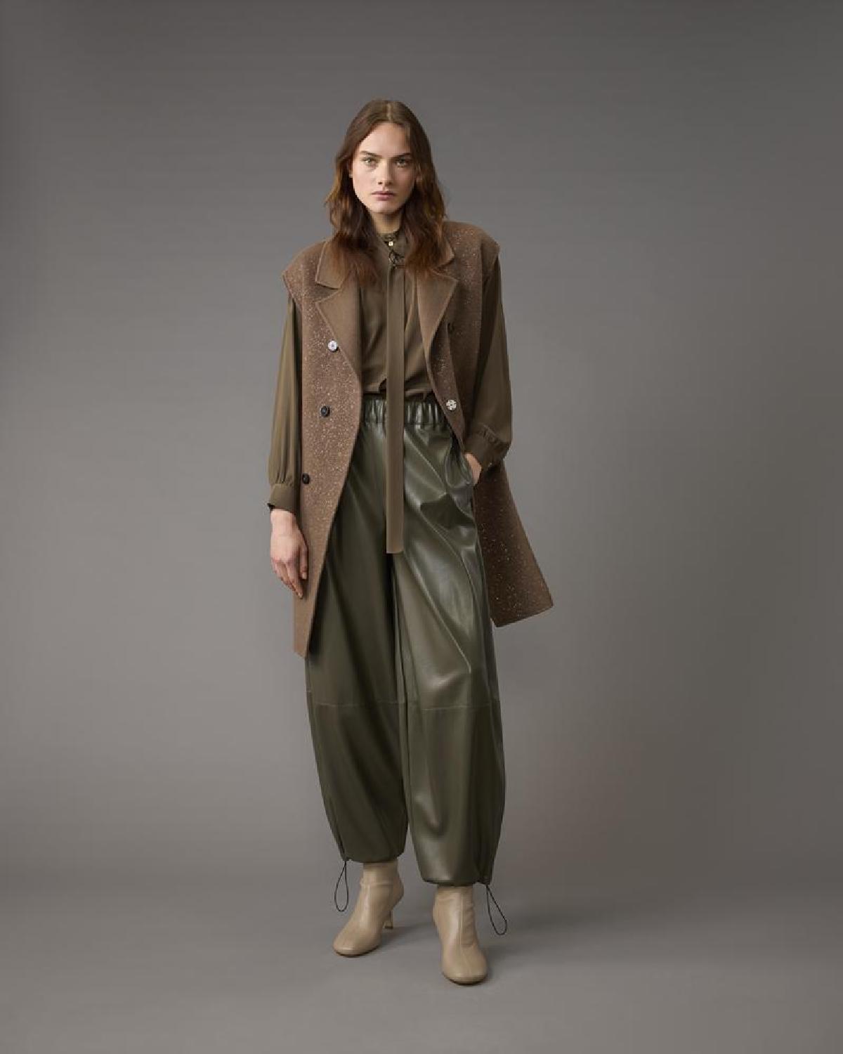 A textura rica em tons de castanho amêndoa e o design sem mangas tornam esta peça perfeita para sobreposições elegantes — seja sobre camisas fluidas, malhas finas ou vestidos midi.