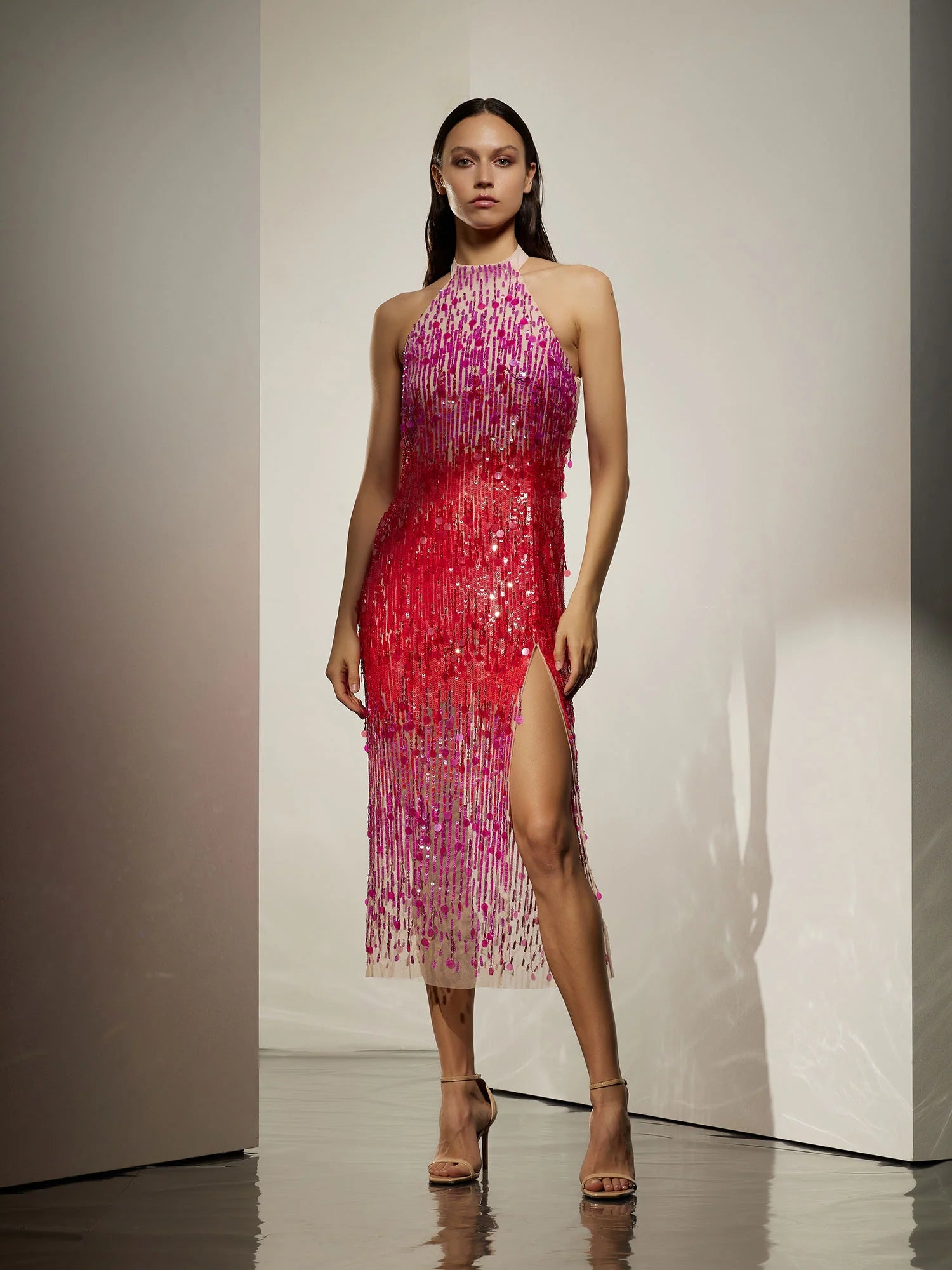 Degrade Embroidered Midi Dress - Simona Coresellini
