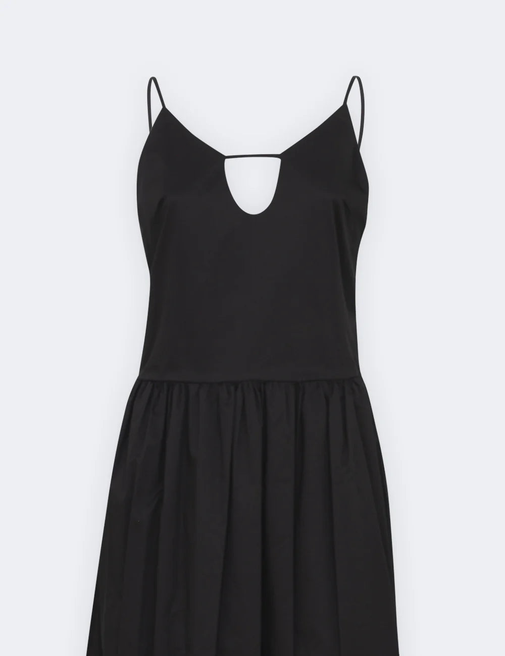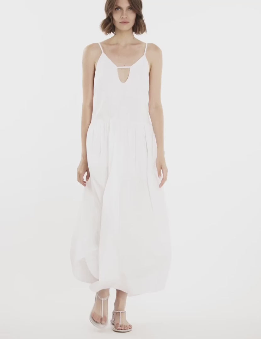 - Solid Color Cotton Long Dress with Adjustable Spaghetti Straps