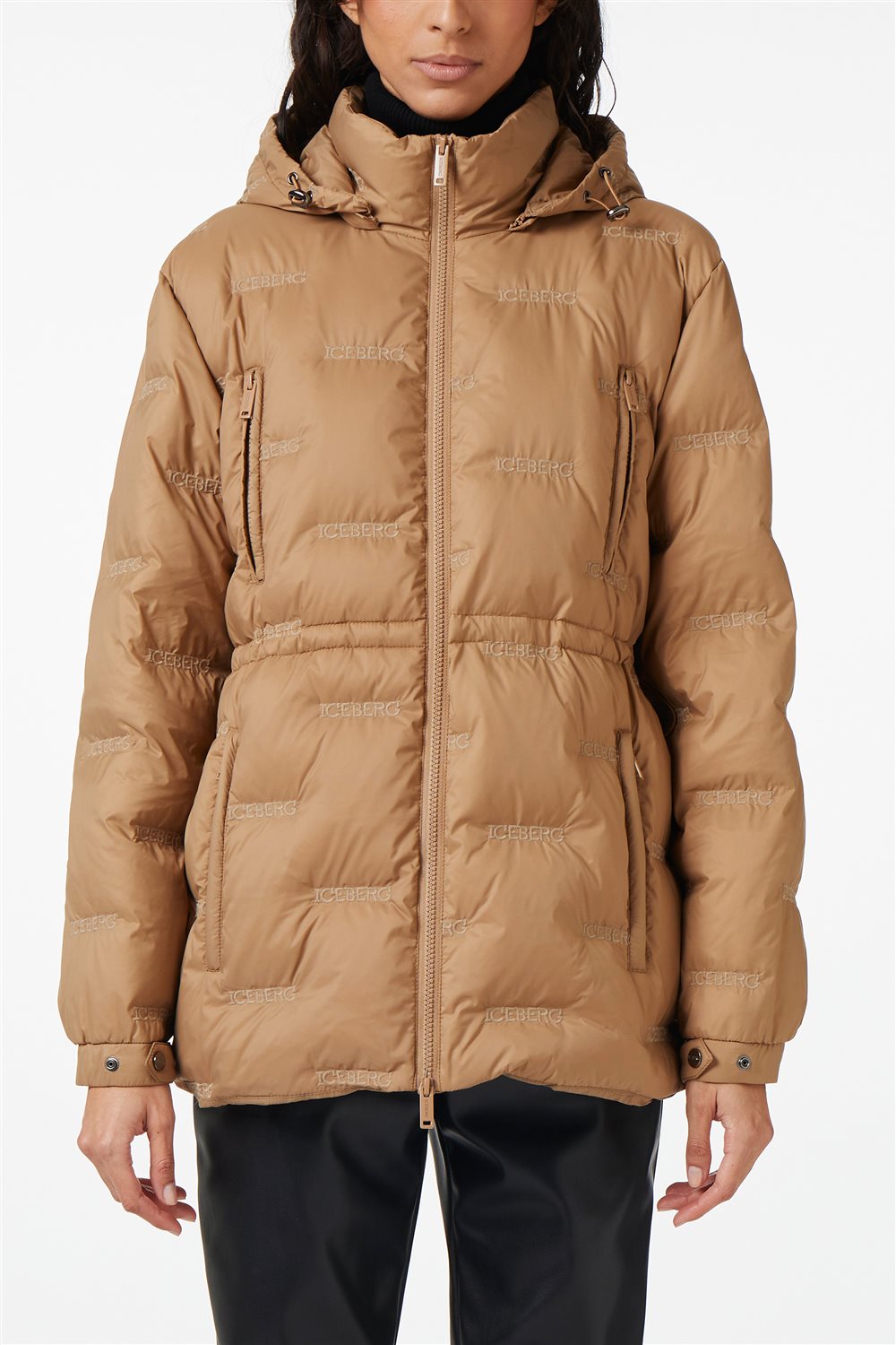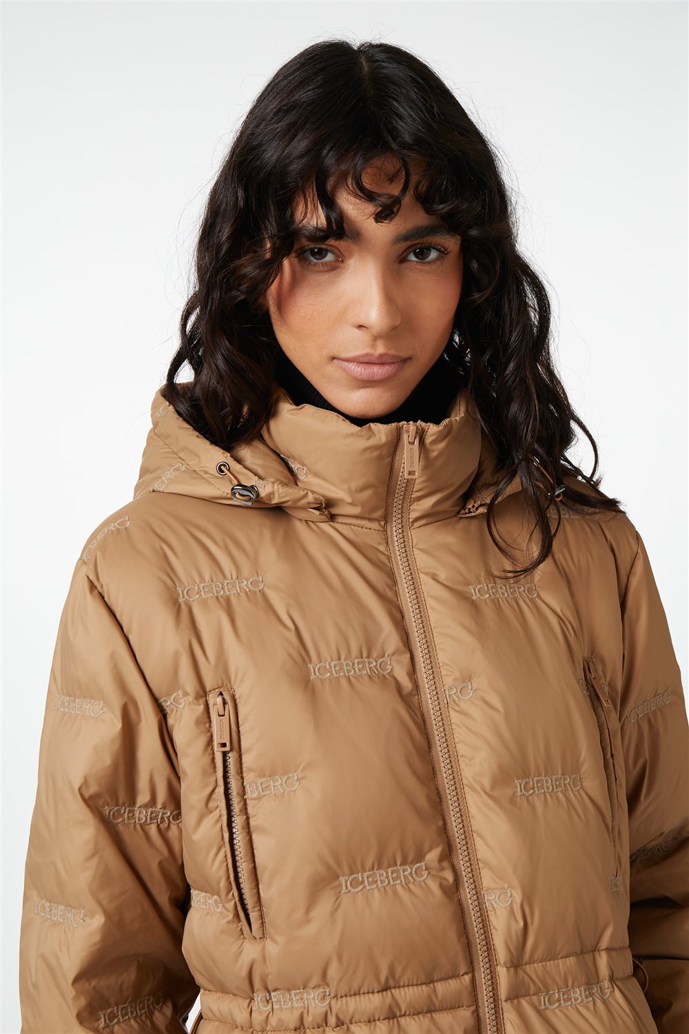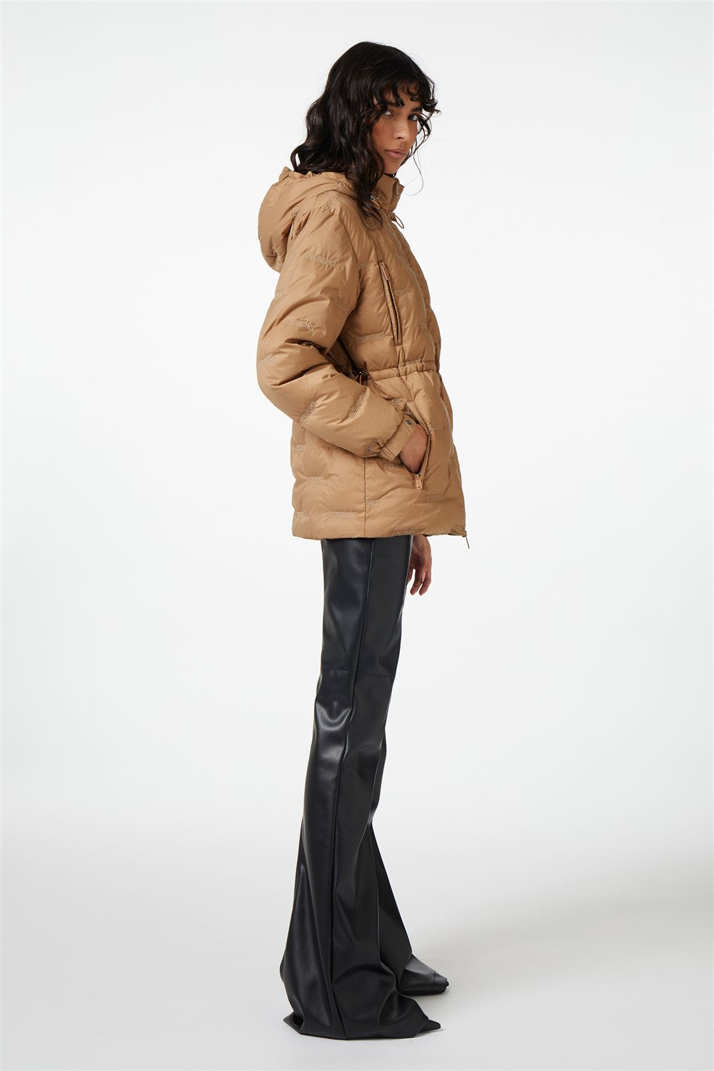 CASACO CURTA COM CAPUZ COM PENAS. EM NYLON, LOGOTIPO BORDADO A TODA A MESMA COR