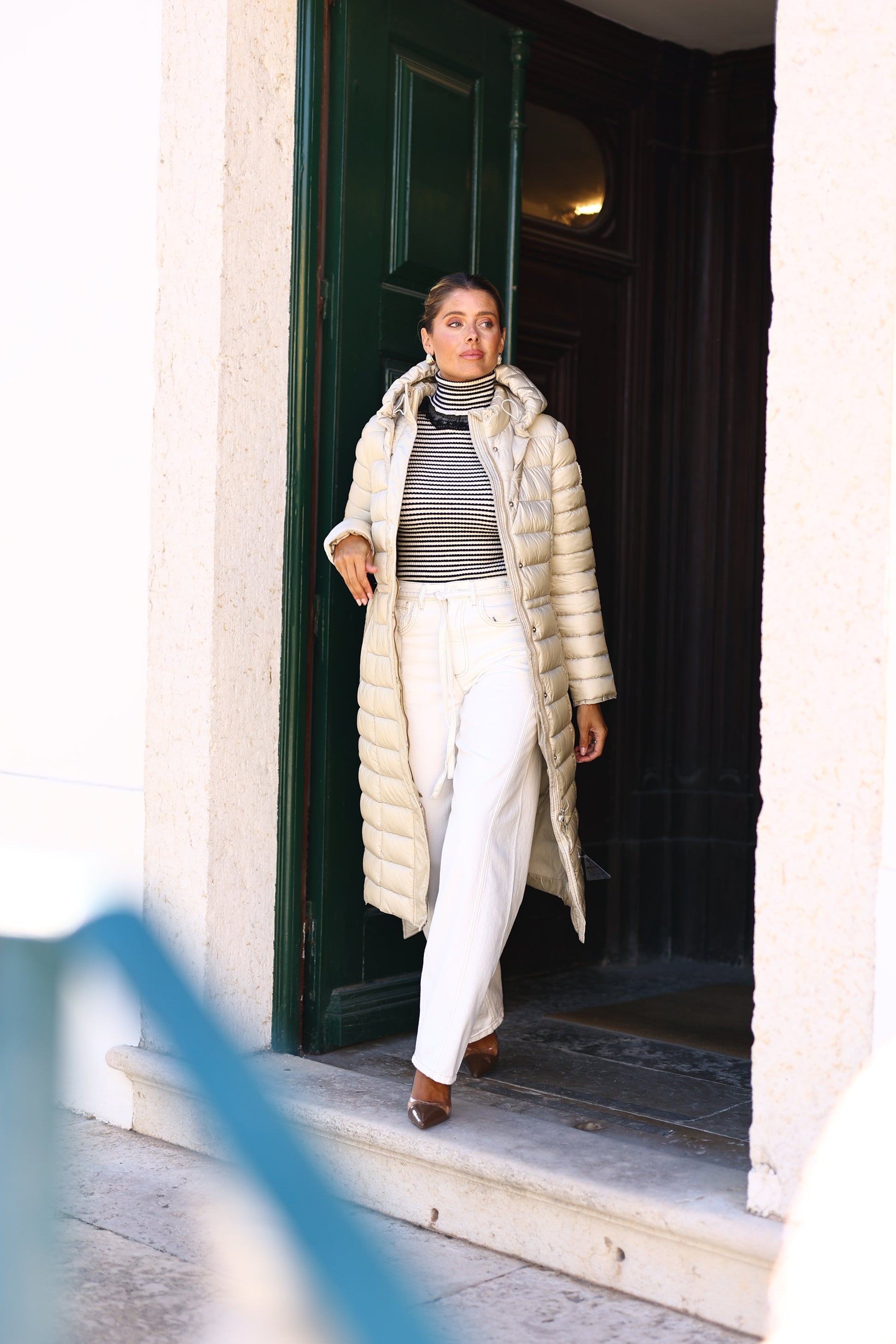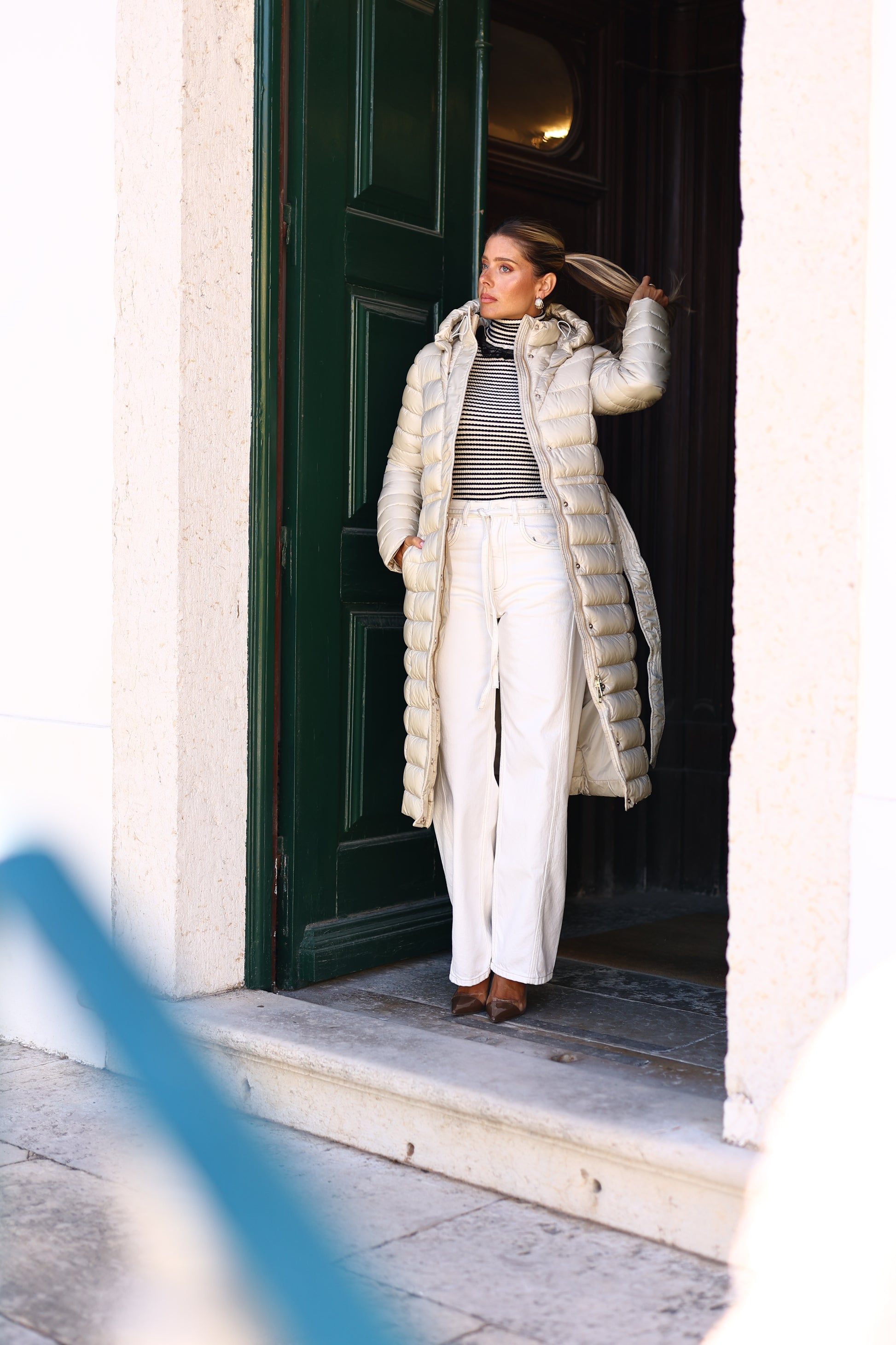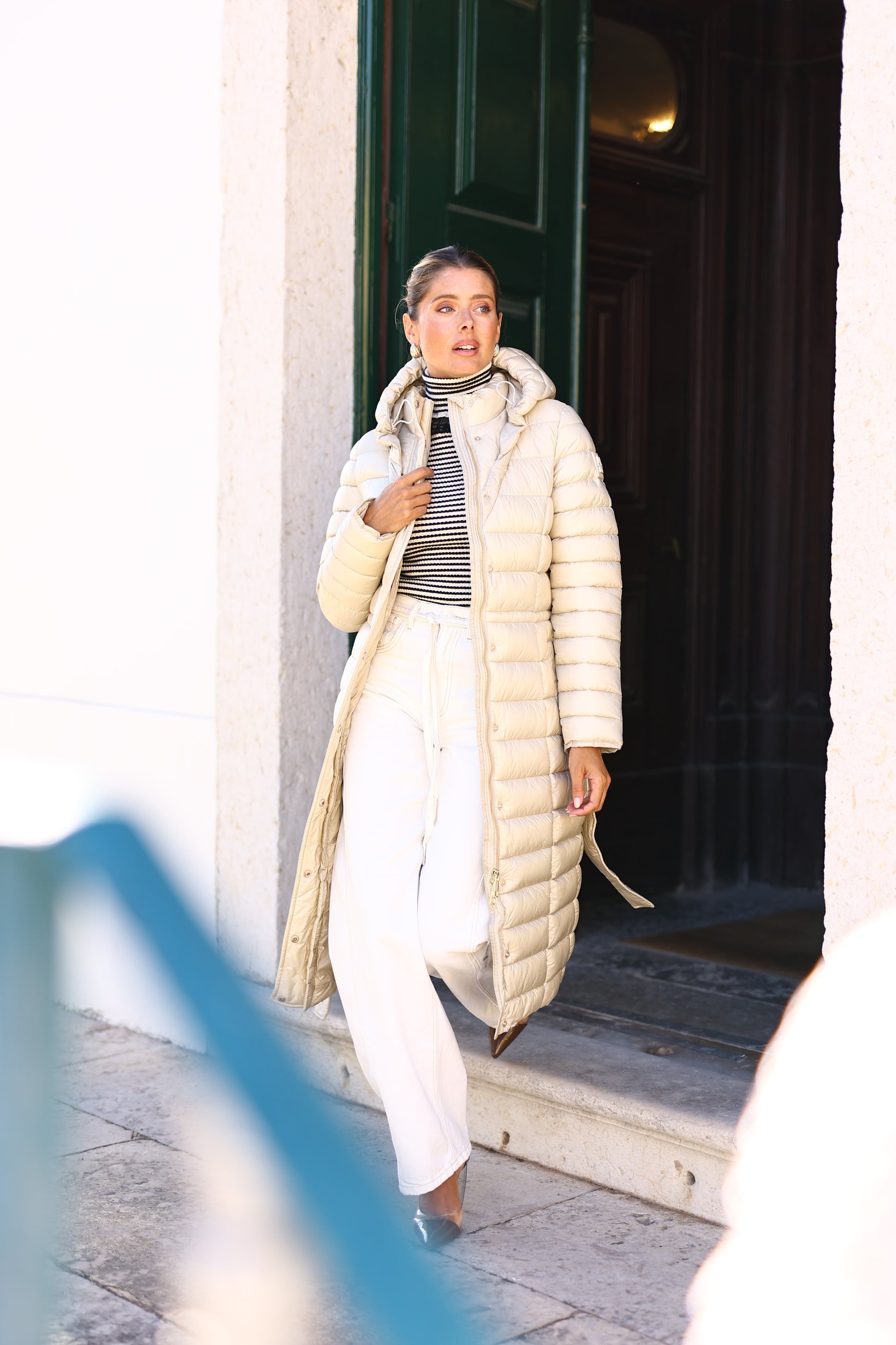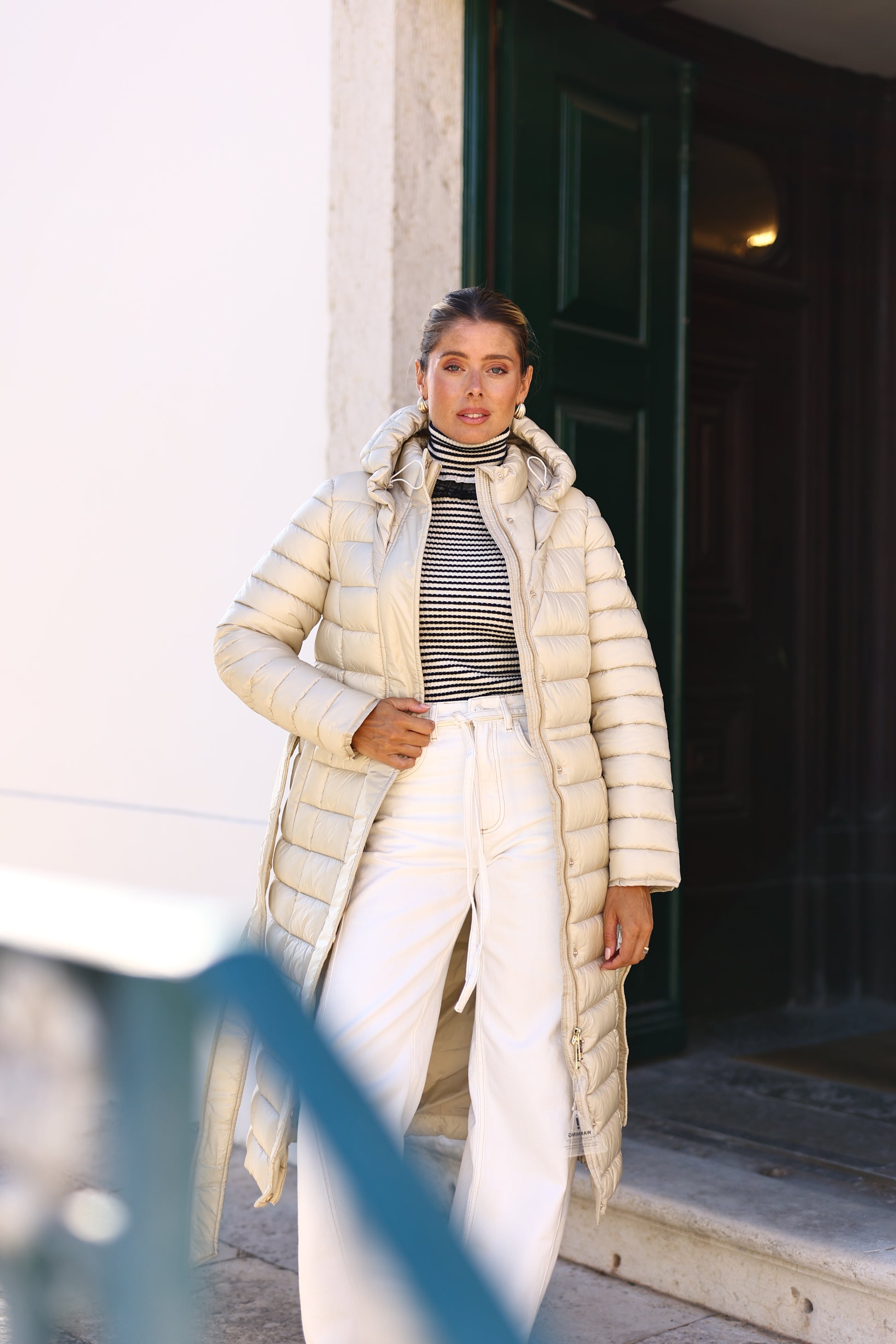 O casaco feminino JOSH V Mirsa na cor Bege Claro é uma adição estilosa ao seu guarda-roupa de inverno. O casaco longo acolchoado foi projetado para conforto nos dias frios. O casaco inclui vários recursos práticos. Por exemplo, o capuz é removível com zíper e possui um cordão para um ajuste confortável. O casaco puffer também possui zíperes em ambos os lados para maior mobilidade. Um cordão interno permite definir a cintura. O casaco fecha na frente com zíper e botão e é fácil de combinar com looks casuais e formais. Use o casaco Mirsa com jeans e botas para um look moderno do dia a dia, ou sobre um vestido com botas de cano alto para um visual elegante.