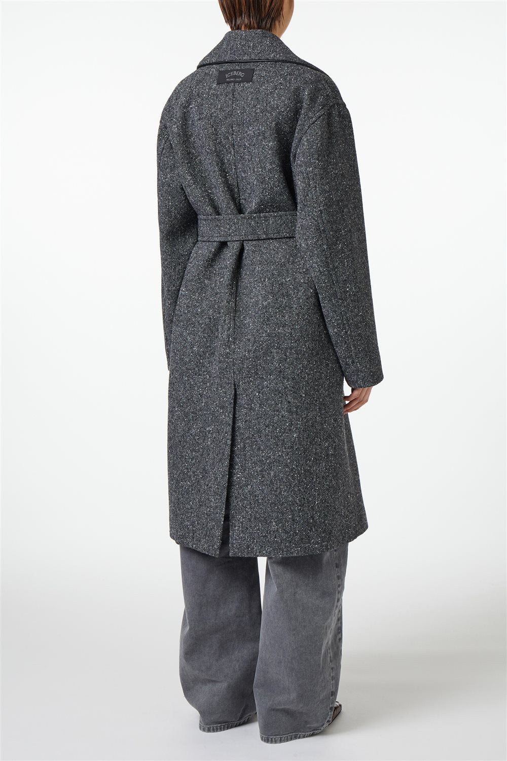 O design é finalizado com a etiqueta de alfaiataria Iceberg aplicada nas costas — um detalhe icónico que sublinha o ADN sofisticado da marca.