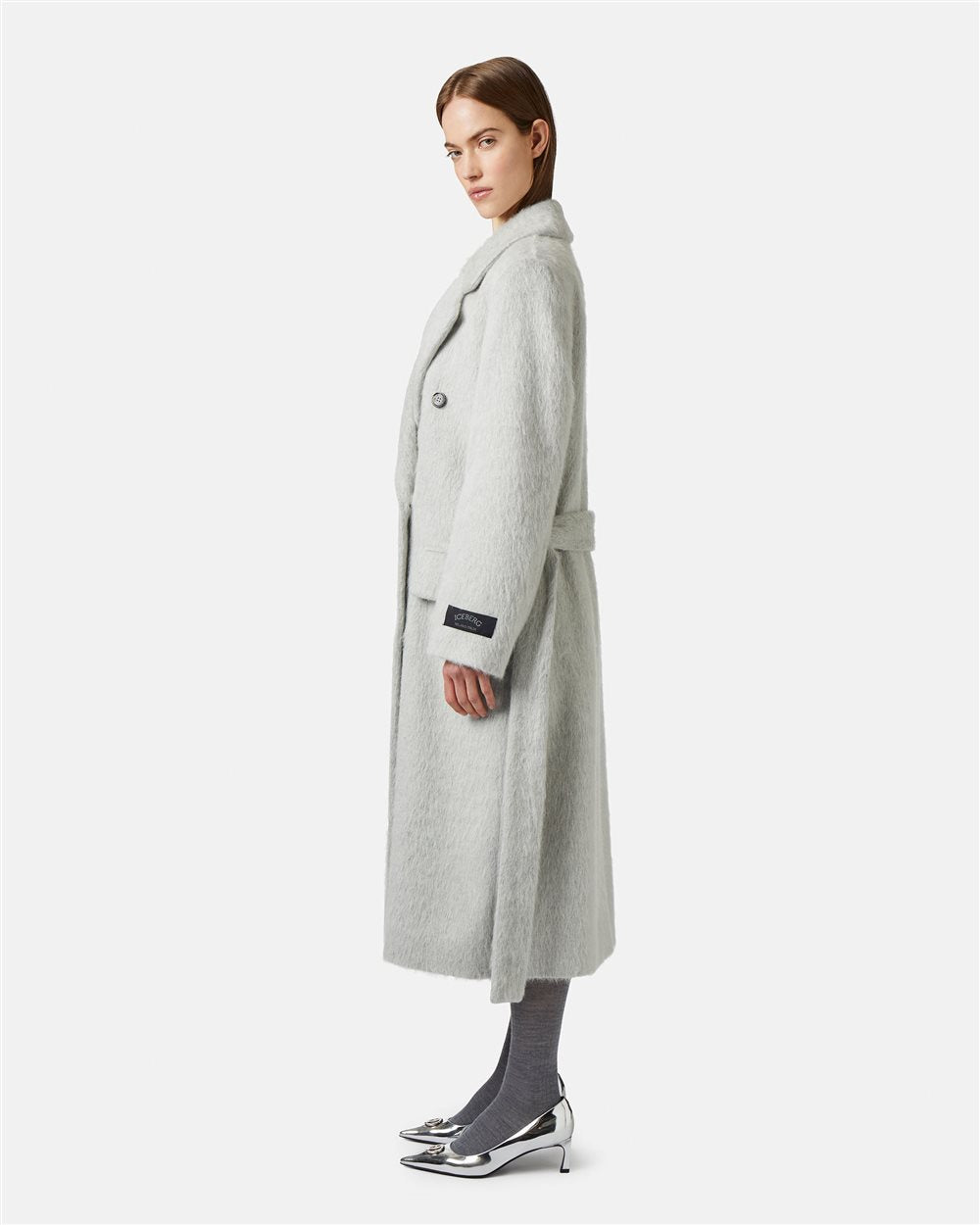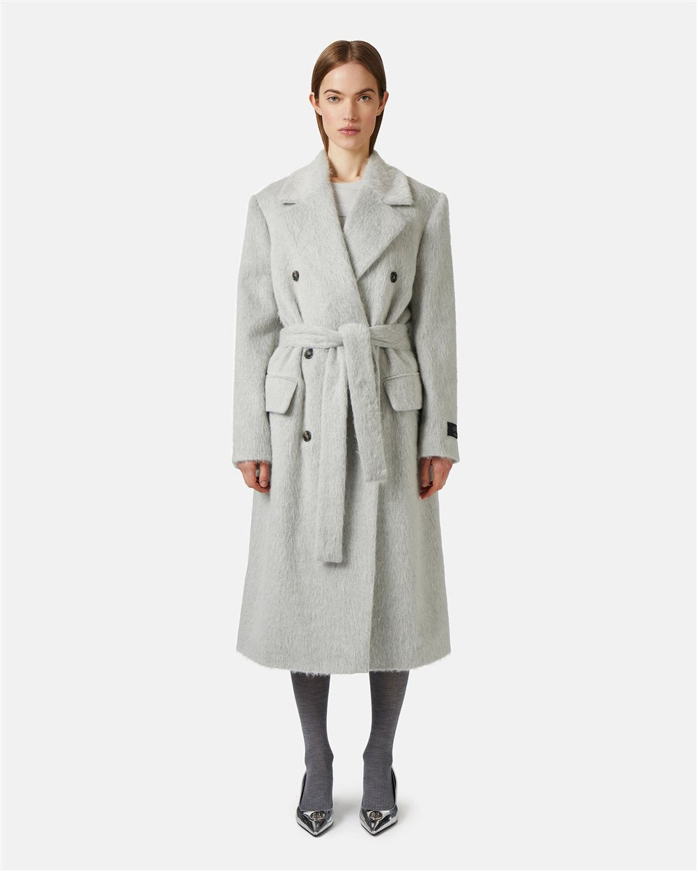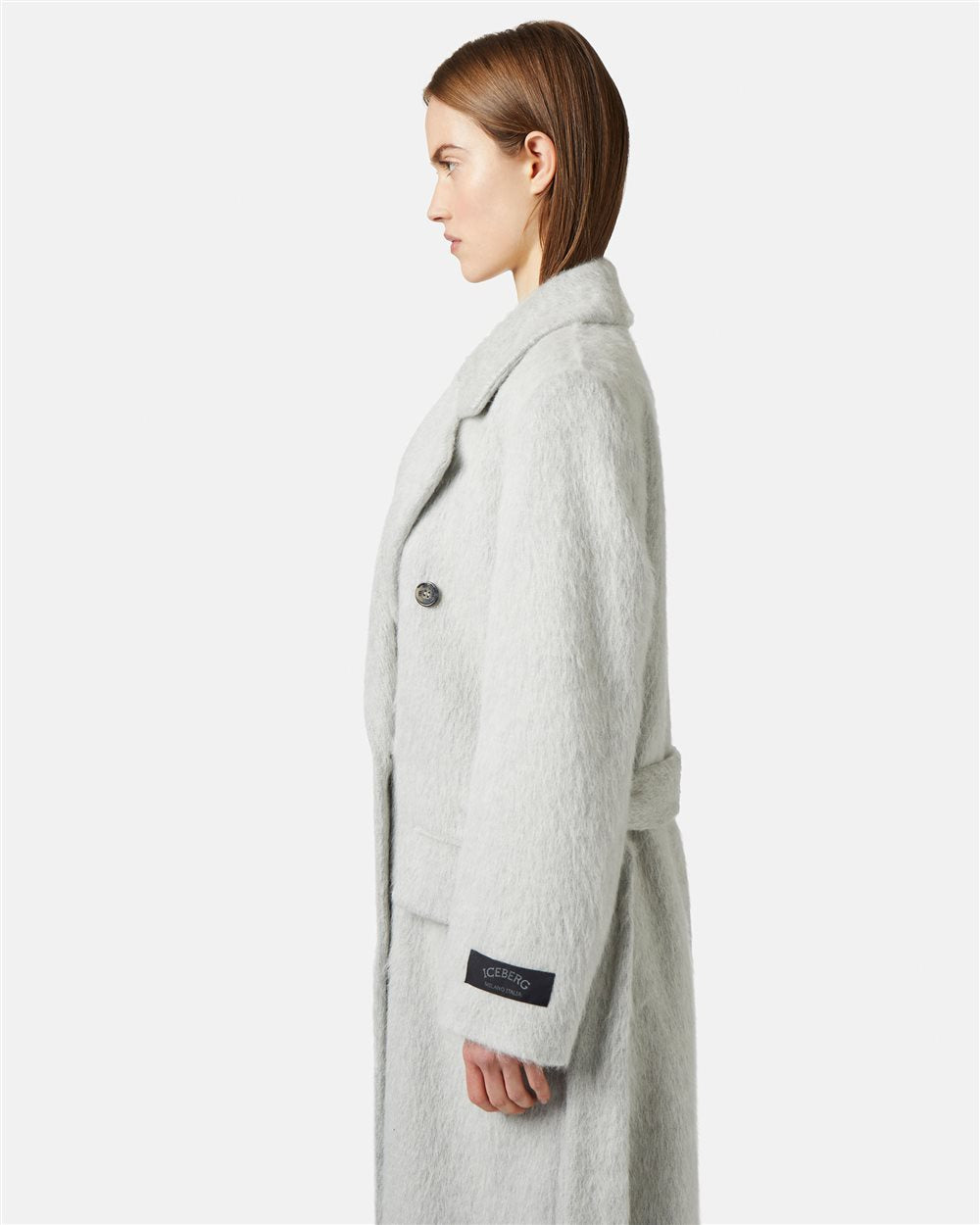 Elegância e conforto se encontram neste casaco trespassado de ajuste relaxado, feito de tecido de veludo luxuoso. O design inclui um cinto removível para maior versatilidade, enquanto casas de botão e botões de chifre falso na frente adicionam um toque de sofisticação. Totalmente forrado para um ajuste perfeito, o casaco é ainda mais realçado pela etiqueta sob medida na manga esquerda com o logotipo Iceberg, que destaca seu artesanato de alta qualidade.