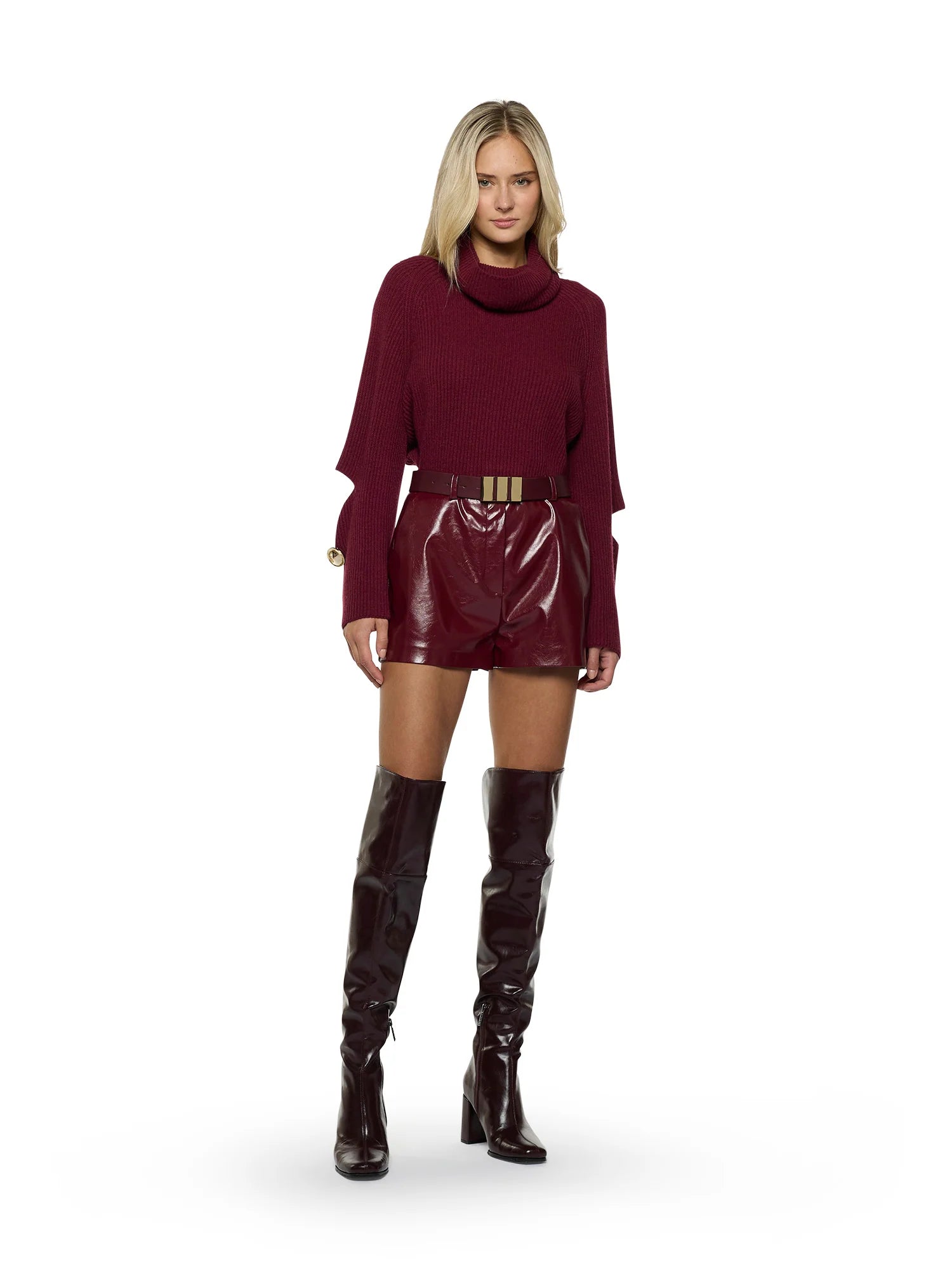 Cinto moderno em pele vegan, com três elementos geométricos dourados que acrescentam um toque sofisticado a qualquer look. Versátil e elegante, é ideal para definir a silhueta e completar coordenados com estilo.