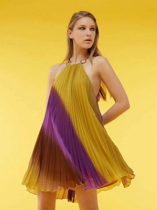 Vestido Curto Plissado Em Georgette Sombreado - Simona Corsellini