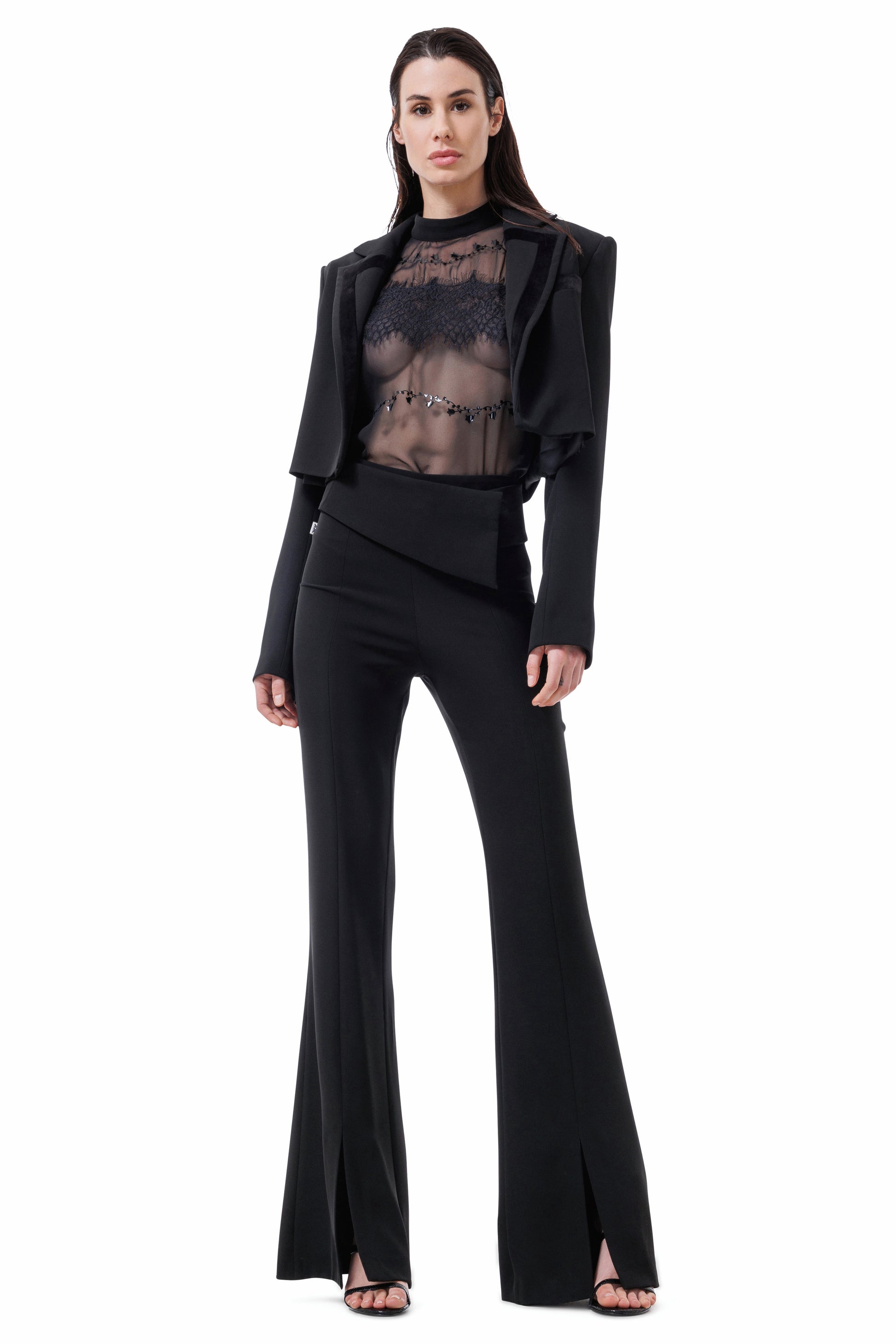 Blouse noire transparente à manches longues de Jijil avec détails en dentelle, idéale pour compléter un look.