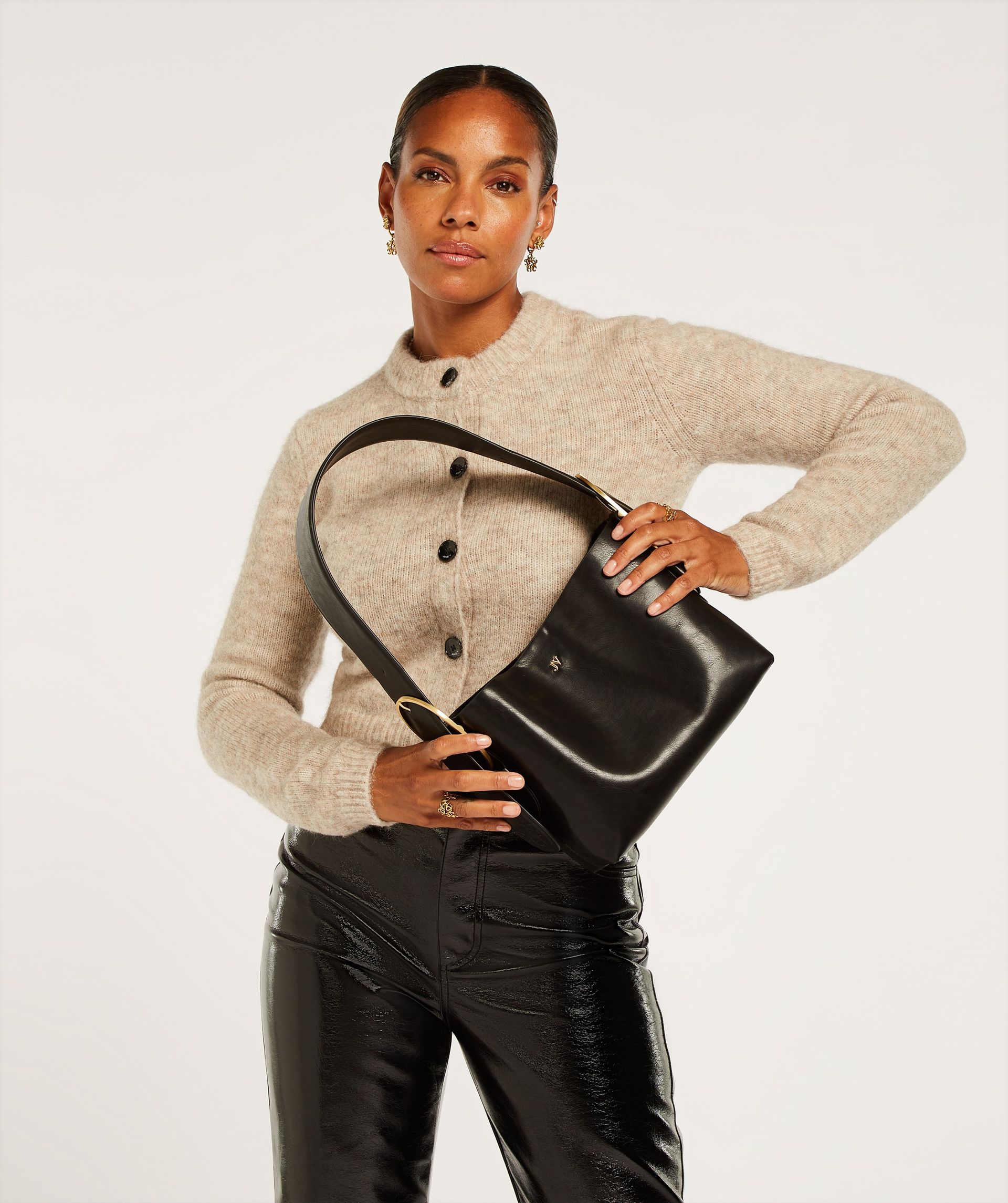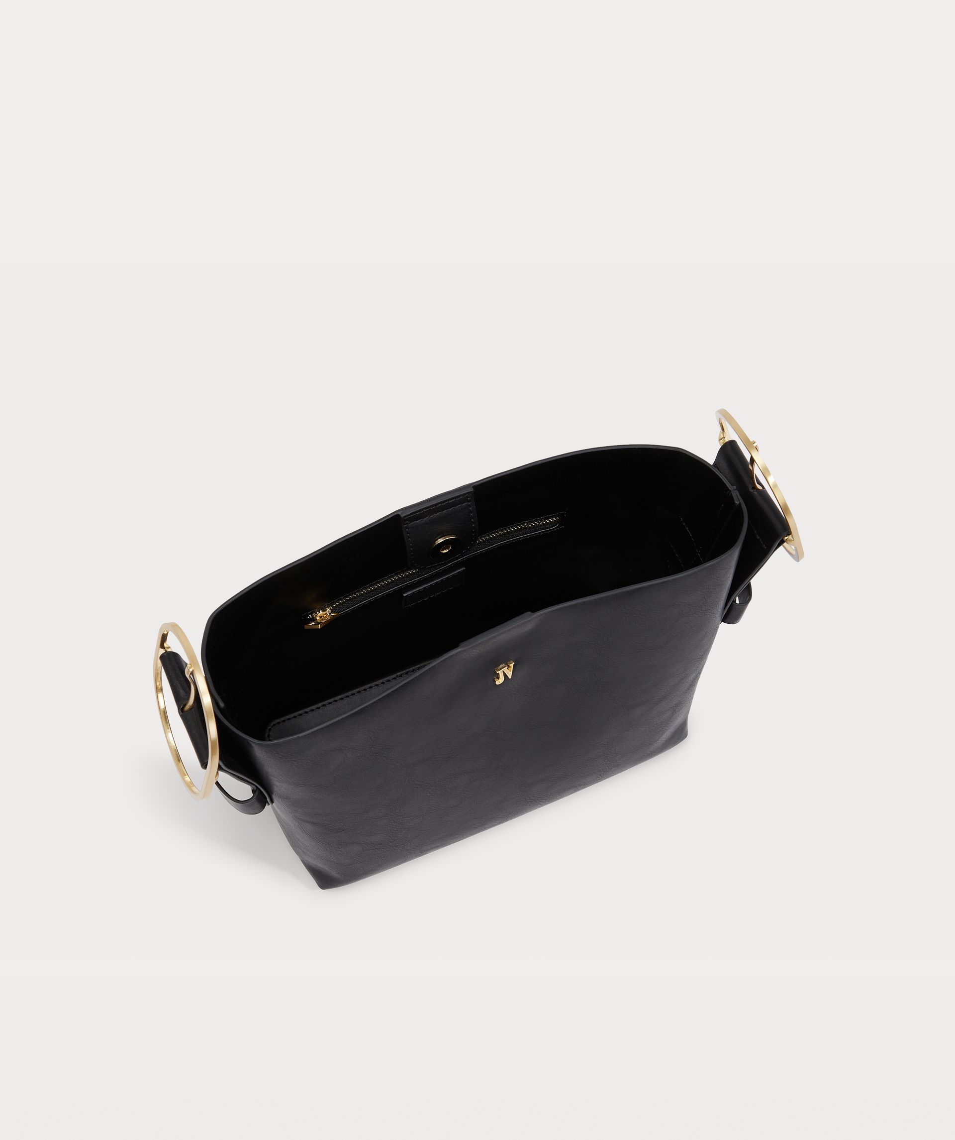 A mala de senhora JOSH V Xemm em preto acrescenta instantaneamente um toque de moda ao seu look. Esta bolsa é feita de pele sintética e fecha facilmente com um fecho magnético. Detalhes como as fivelas grandes e o subtil logótipo JV dourado completam o visual da mala. Combine esta mala com umas botas de cano alto Bobo a condizer e um vestido preto para um conjunto feminino.