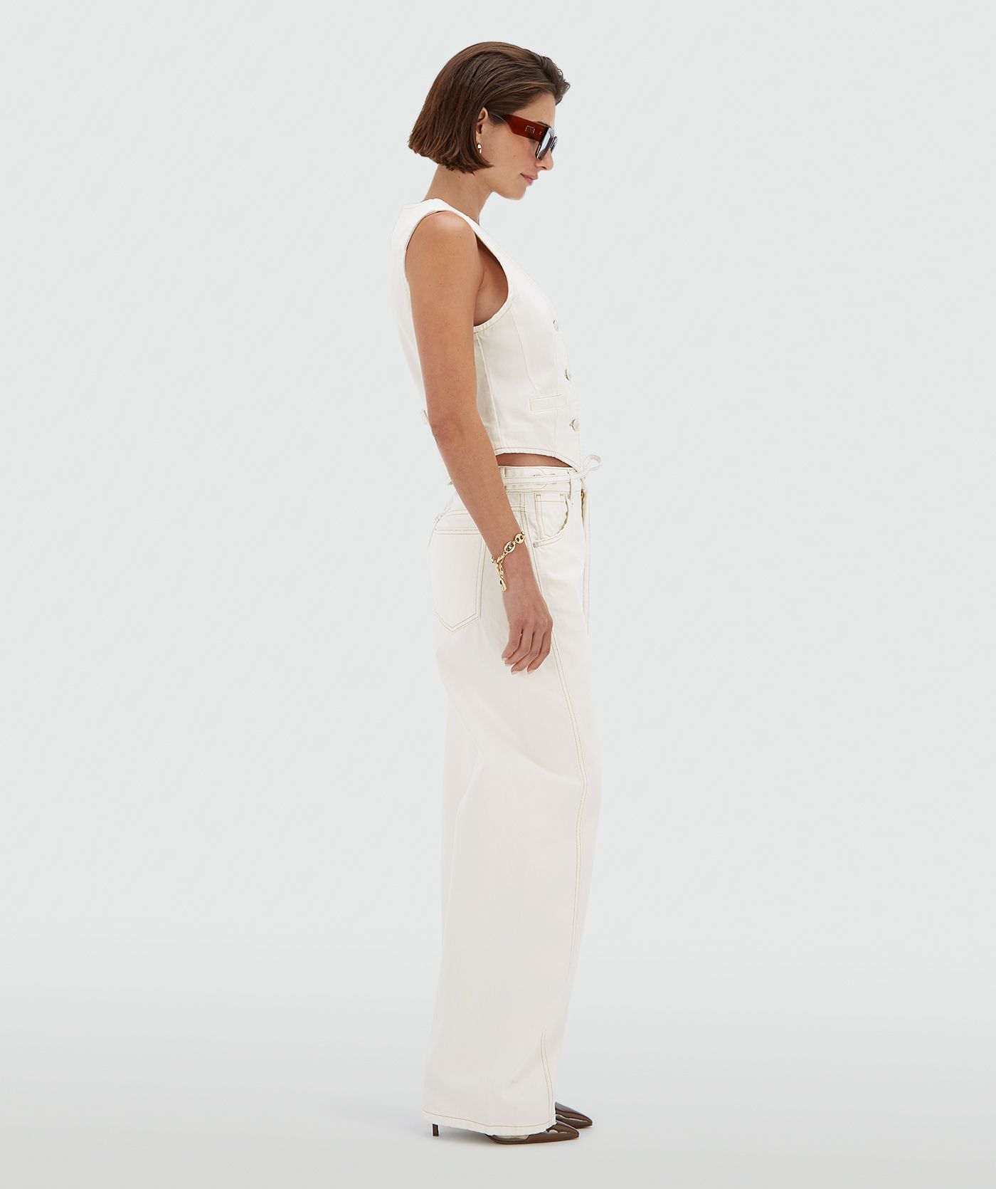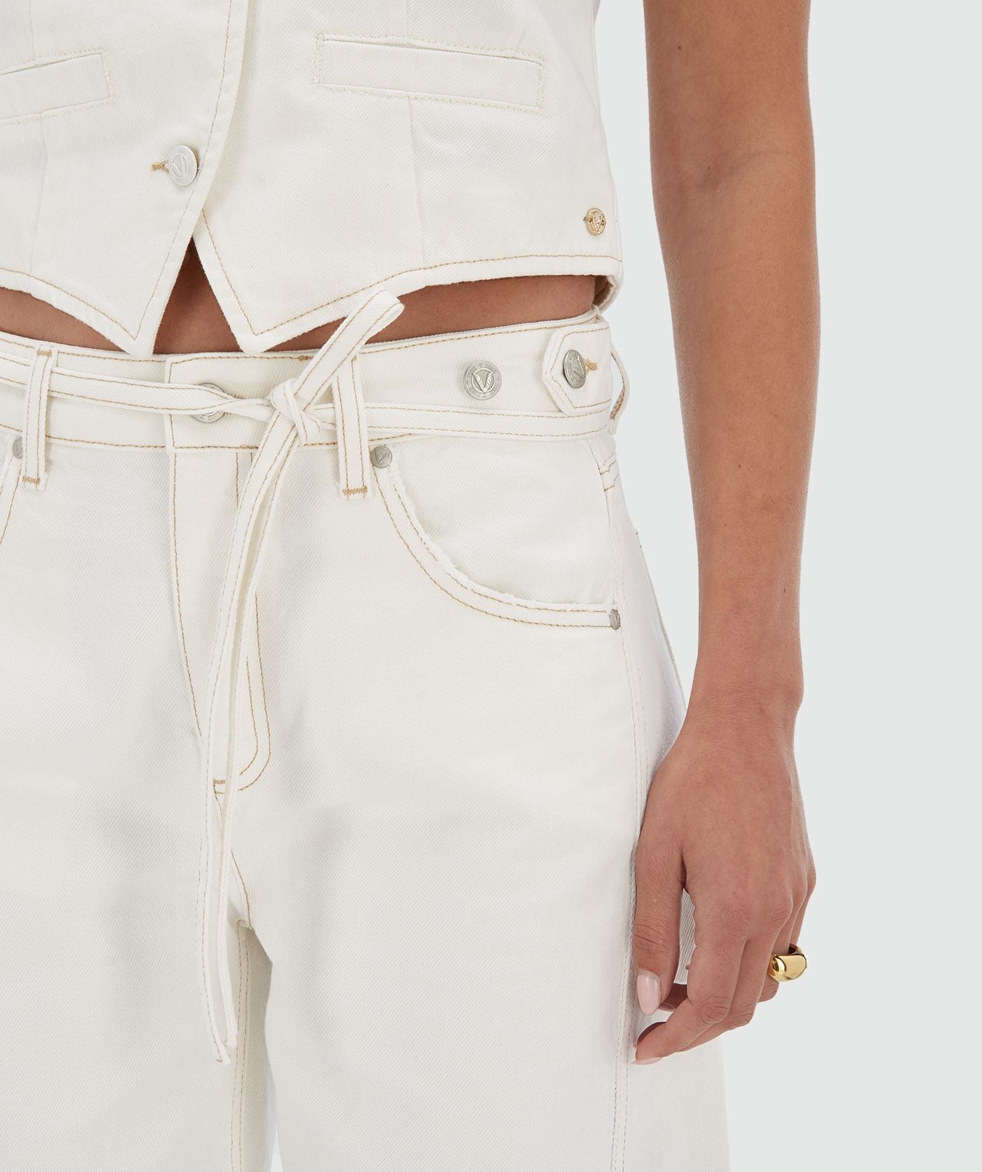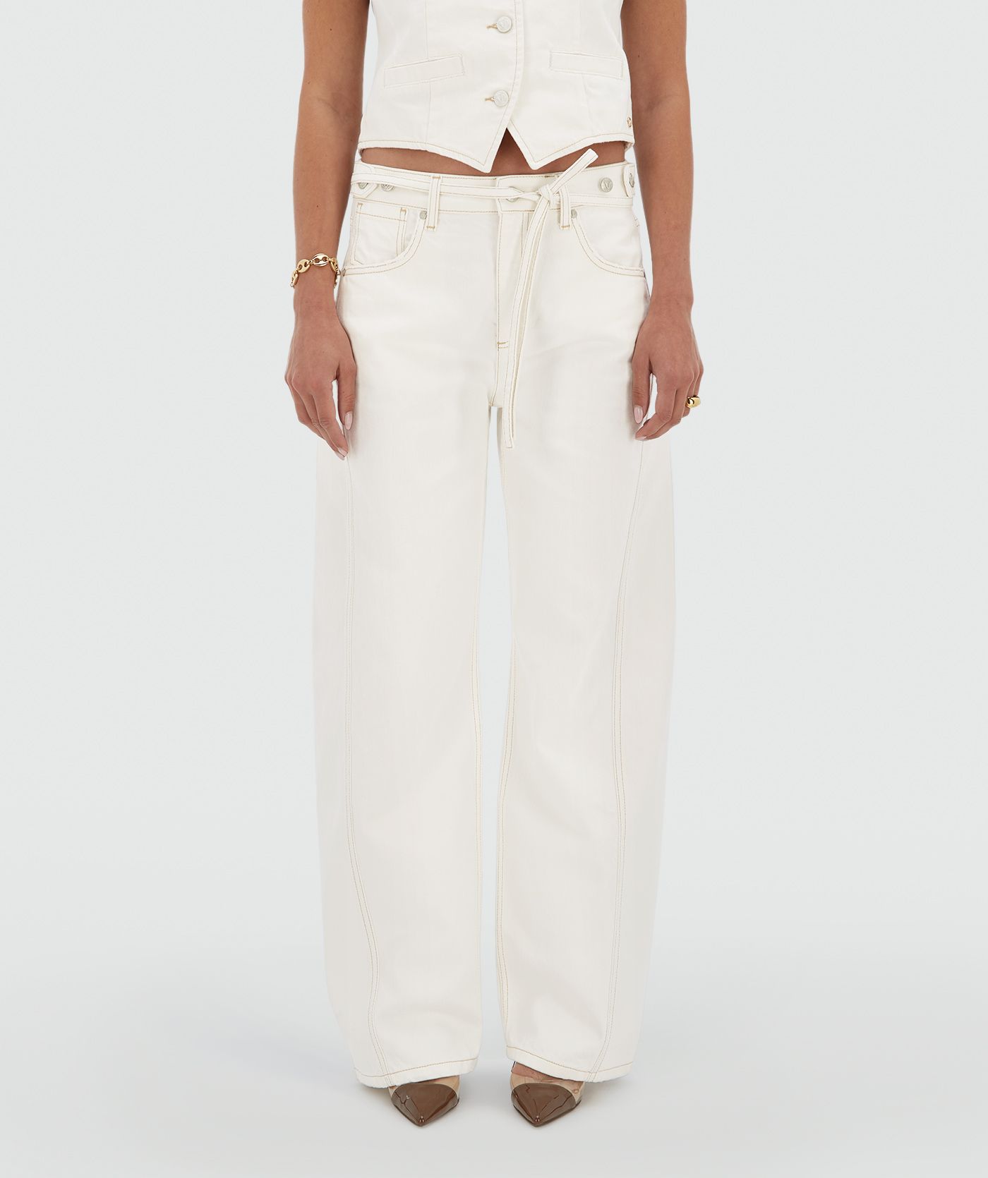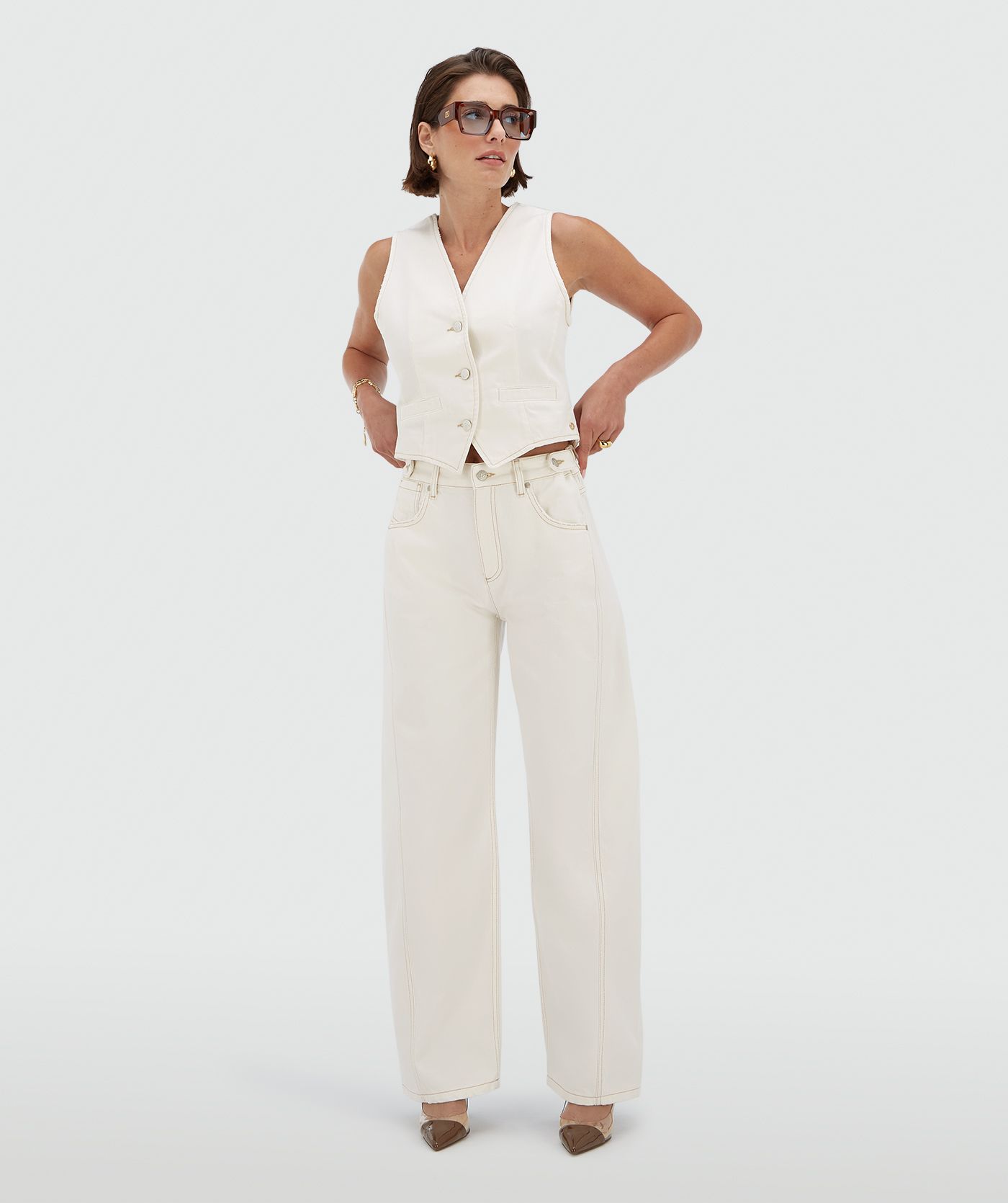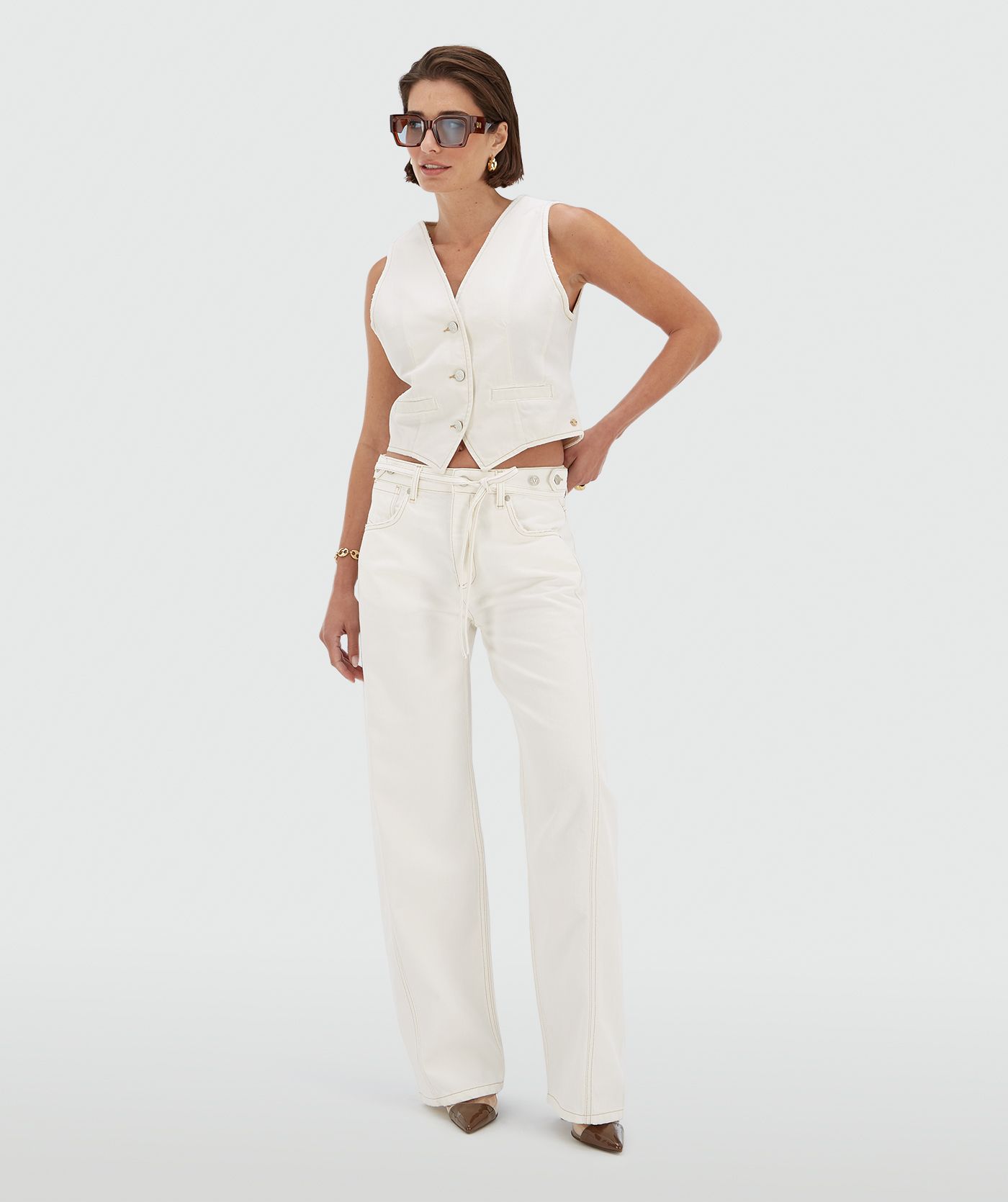 Your wardrobe isn’t complete without the JOSH V Dewi women’s trousers in Creme White. These mid-rise jeans have a balloon fit and feature a small belt and contrasting stitching. The trousers are made from recycled cotton and cotton sourced through Better Cotton. Styling tip: go for the full look and pair the white balloon fit jeans with the matching Kay waistcoat.