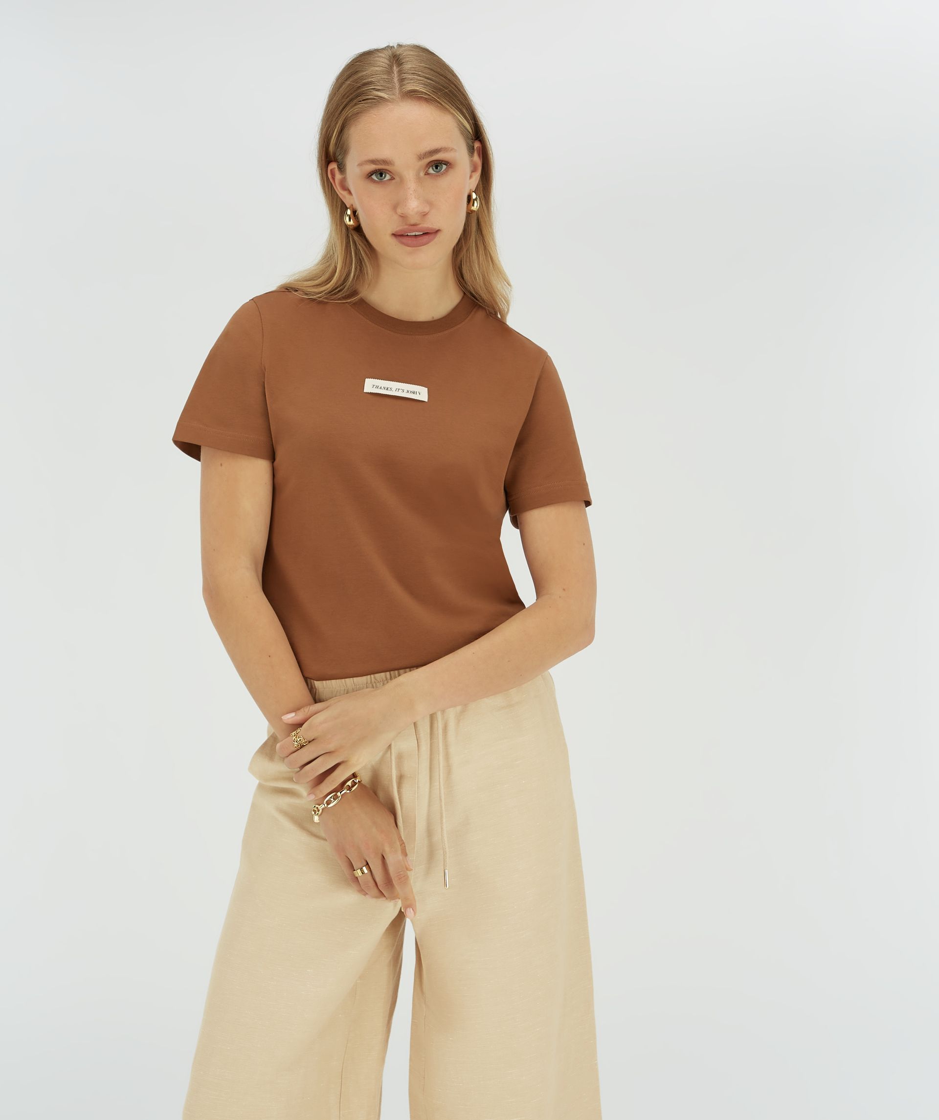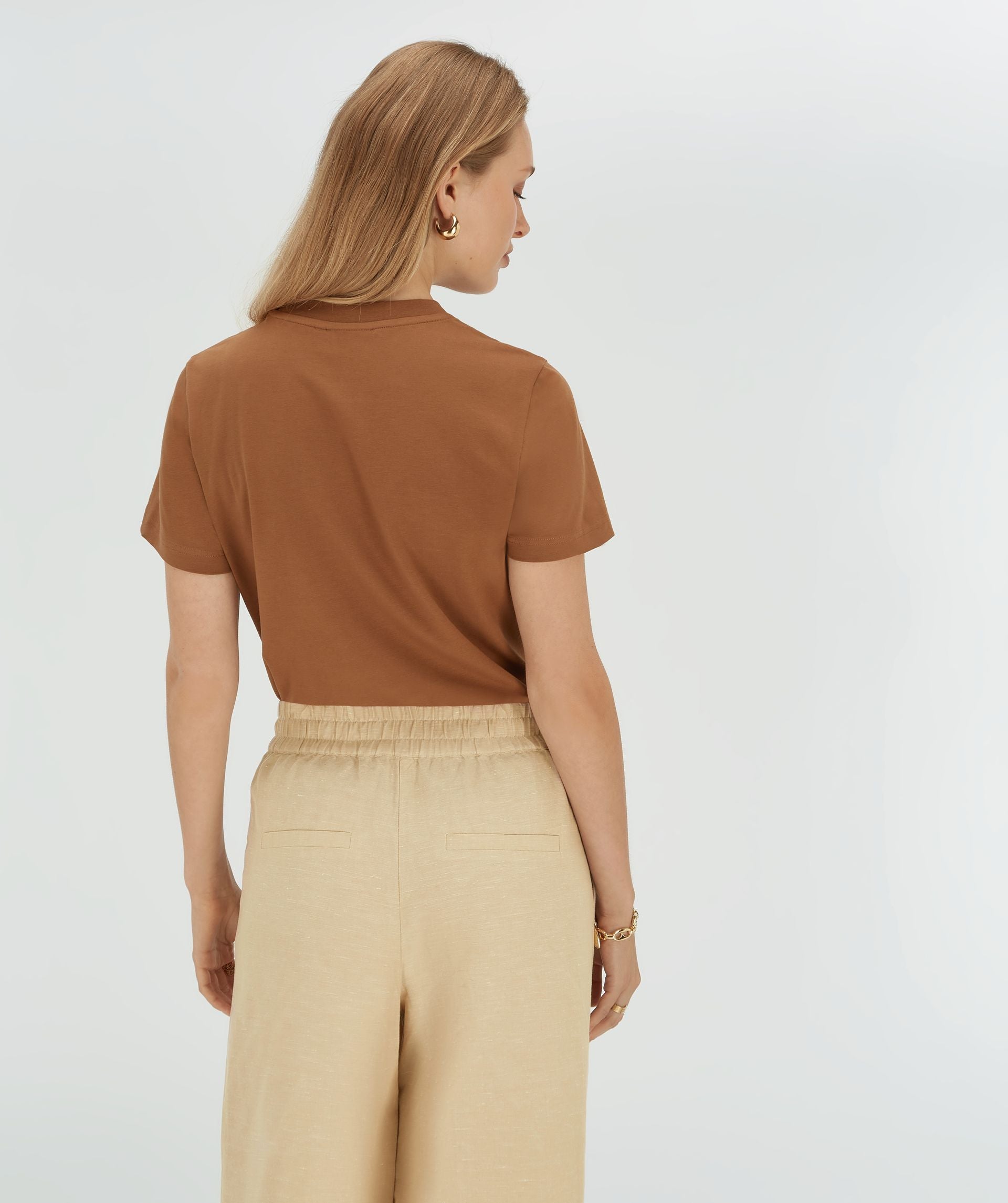 Uma peça essencial no guarda-roupa, esta T-shirt combina conforto e versatilidade. Com gola redonda clássica e mangas curtas, é perfeita para usar em qualquer ocasião, seja sozinha ou como base para sobreposições.