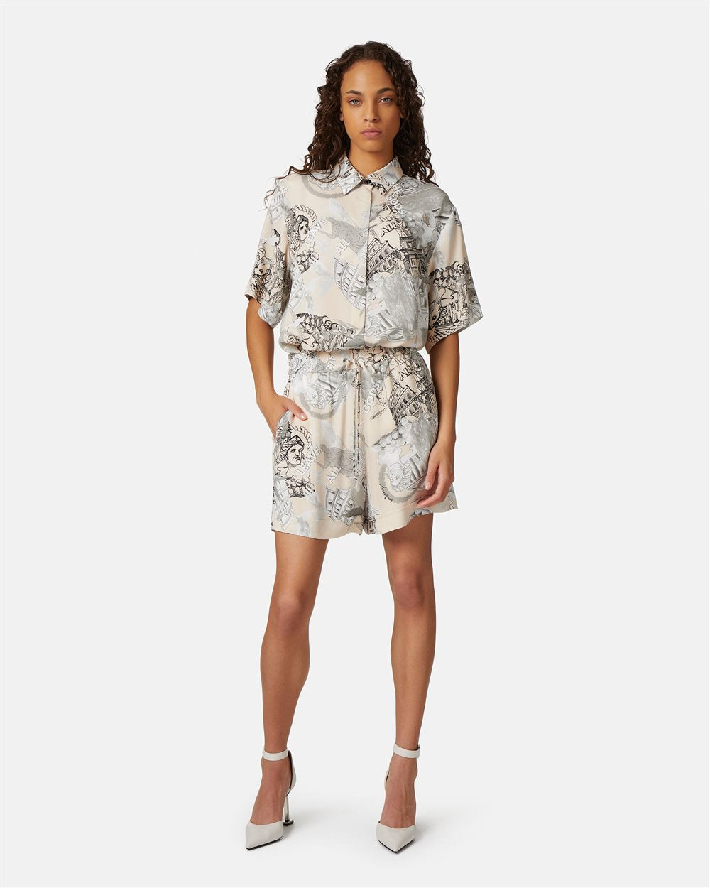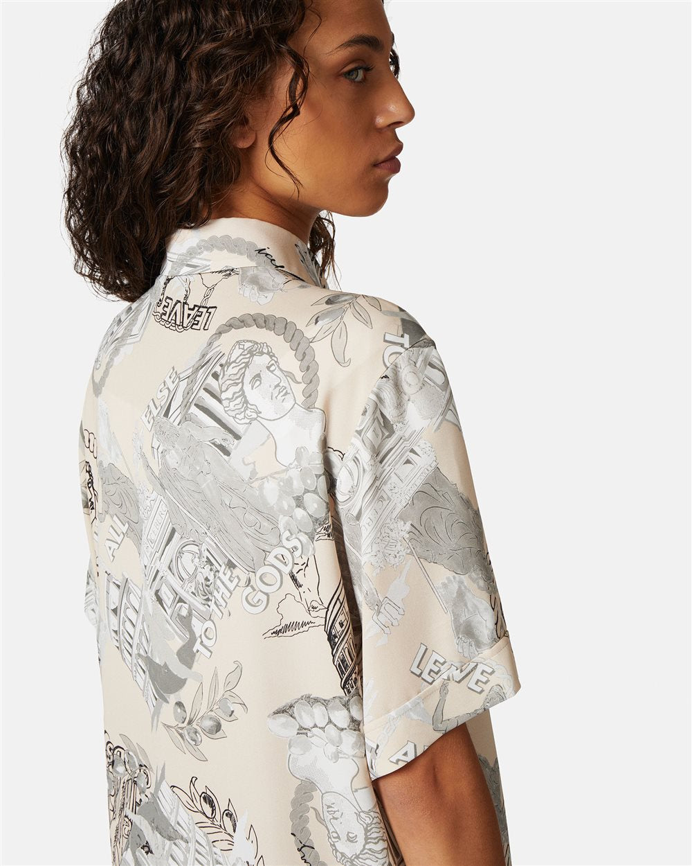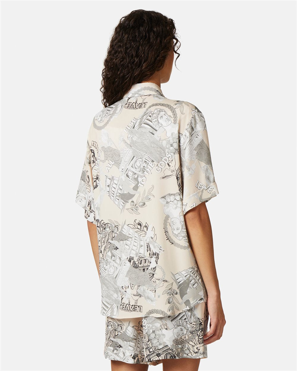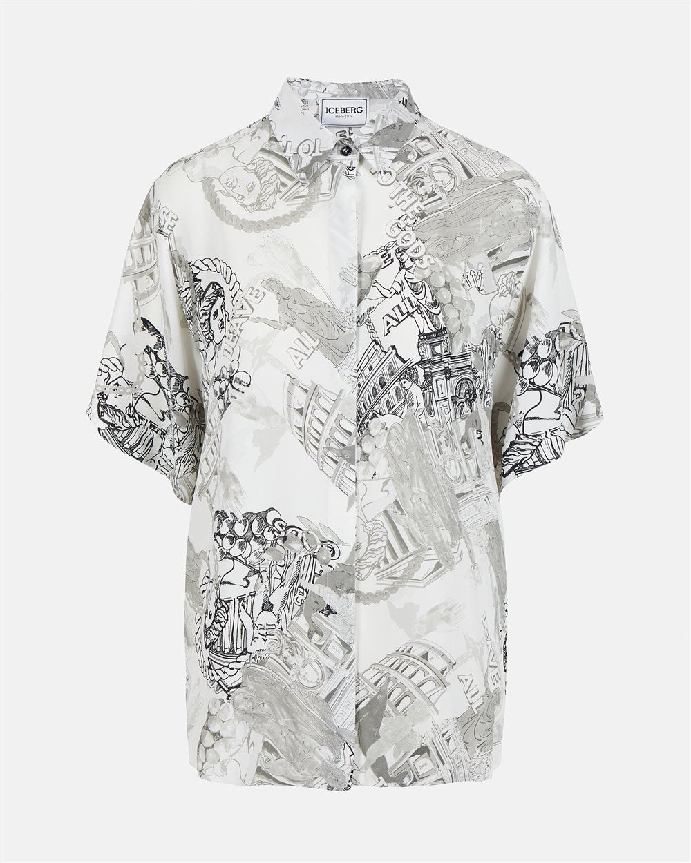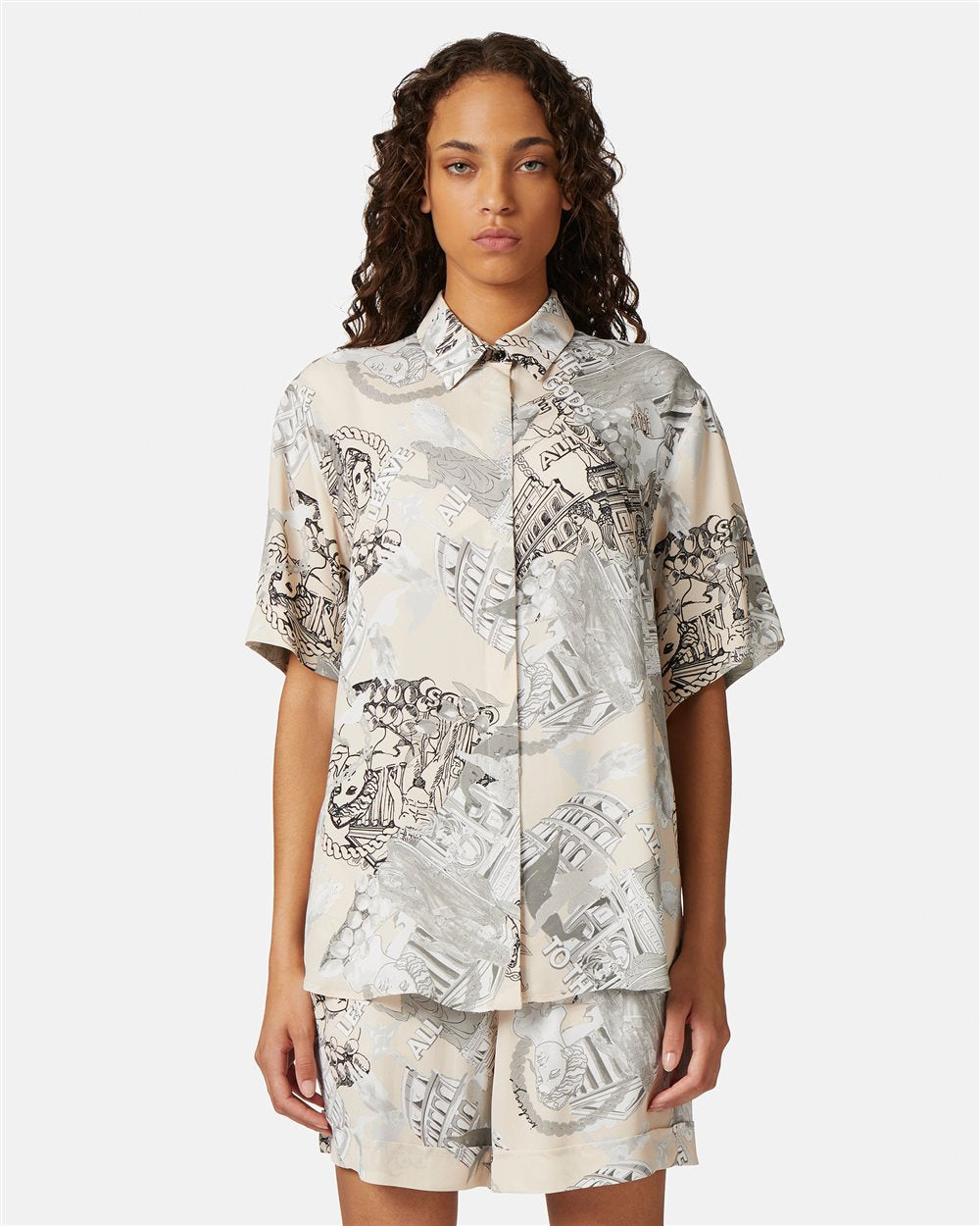 Camisa de manga curta, em tecido georgette duplo sustentável, com estampas Roma. Tamanho normal.