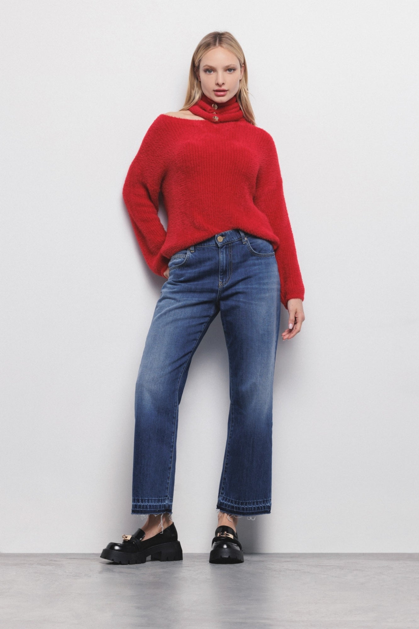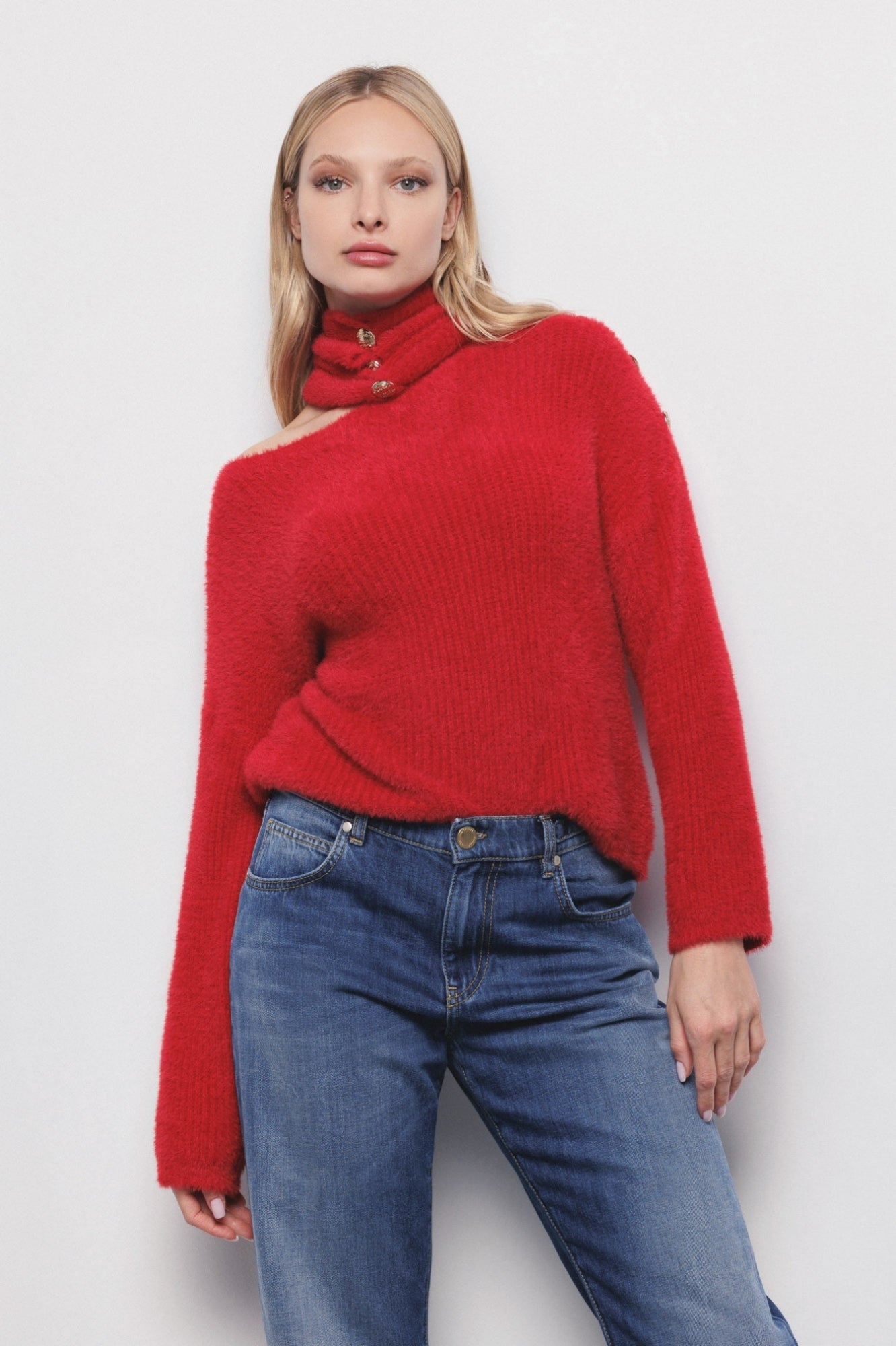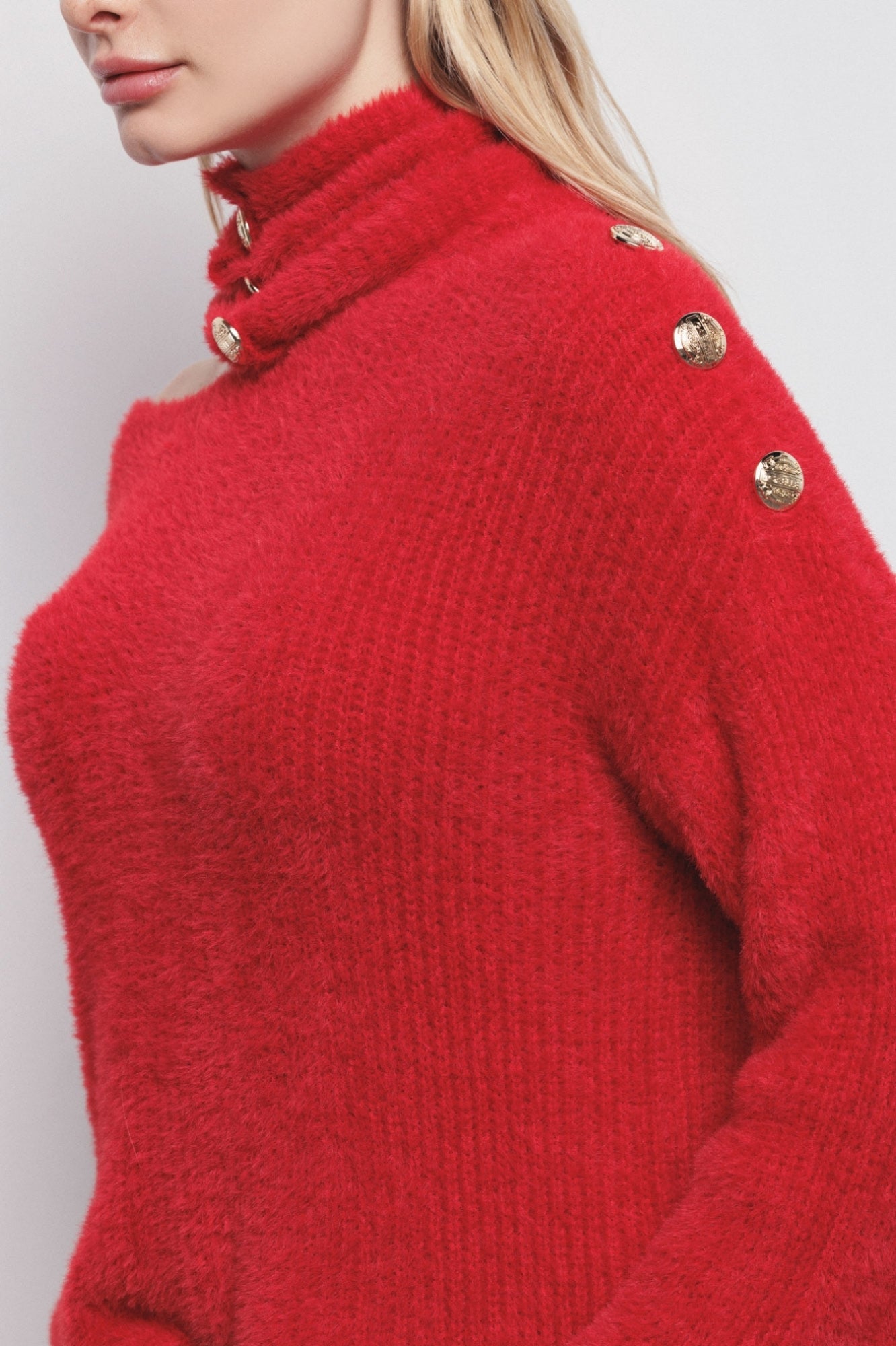 Camisola de pelo fofinho com abertura lateral. Disponível em creme.