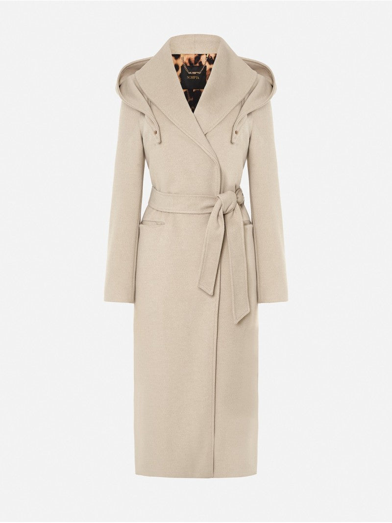 Elegante e intemporal, este casaco comprido combina sofisticação e funcionalidade num design moderno. O tecido encorpado e macio proporciona conforto e estrutura, enquanto o cinto ajustável marca a cintura e realça a silhueta. O capuz removível adiciona versatilidade — perfeito para um look casual chic ou para composições mais formais.