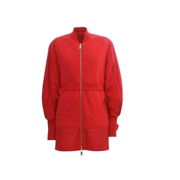 Casaco comprimento médio acinturado em malha com ziper e bolsos nas laterais