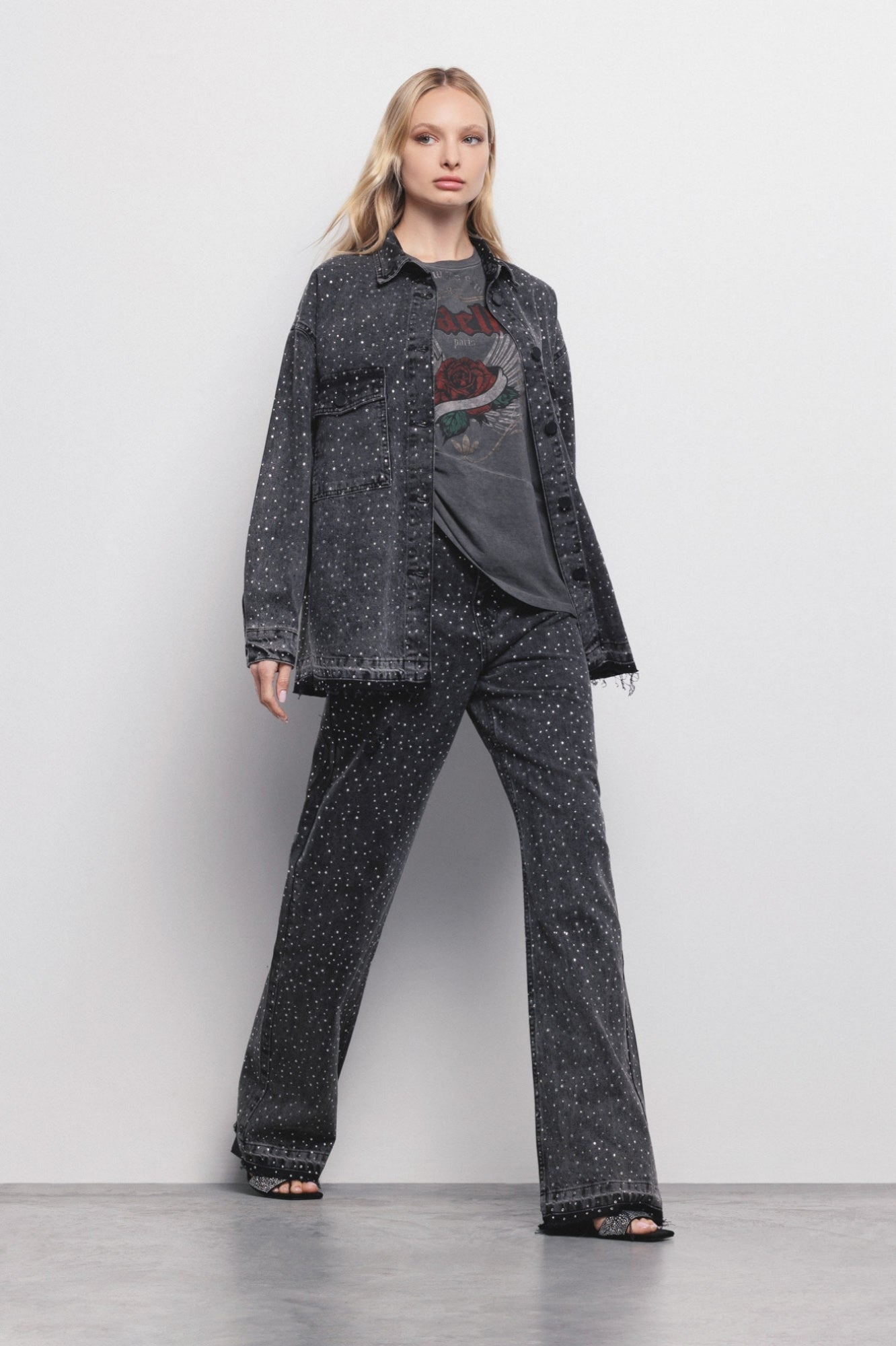 Jaqueta jeans com strass.