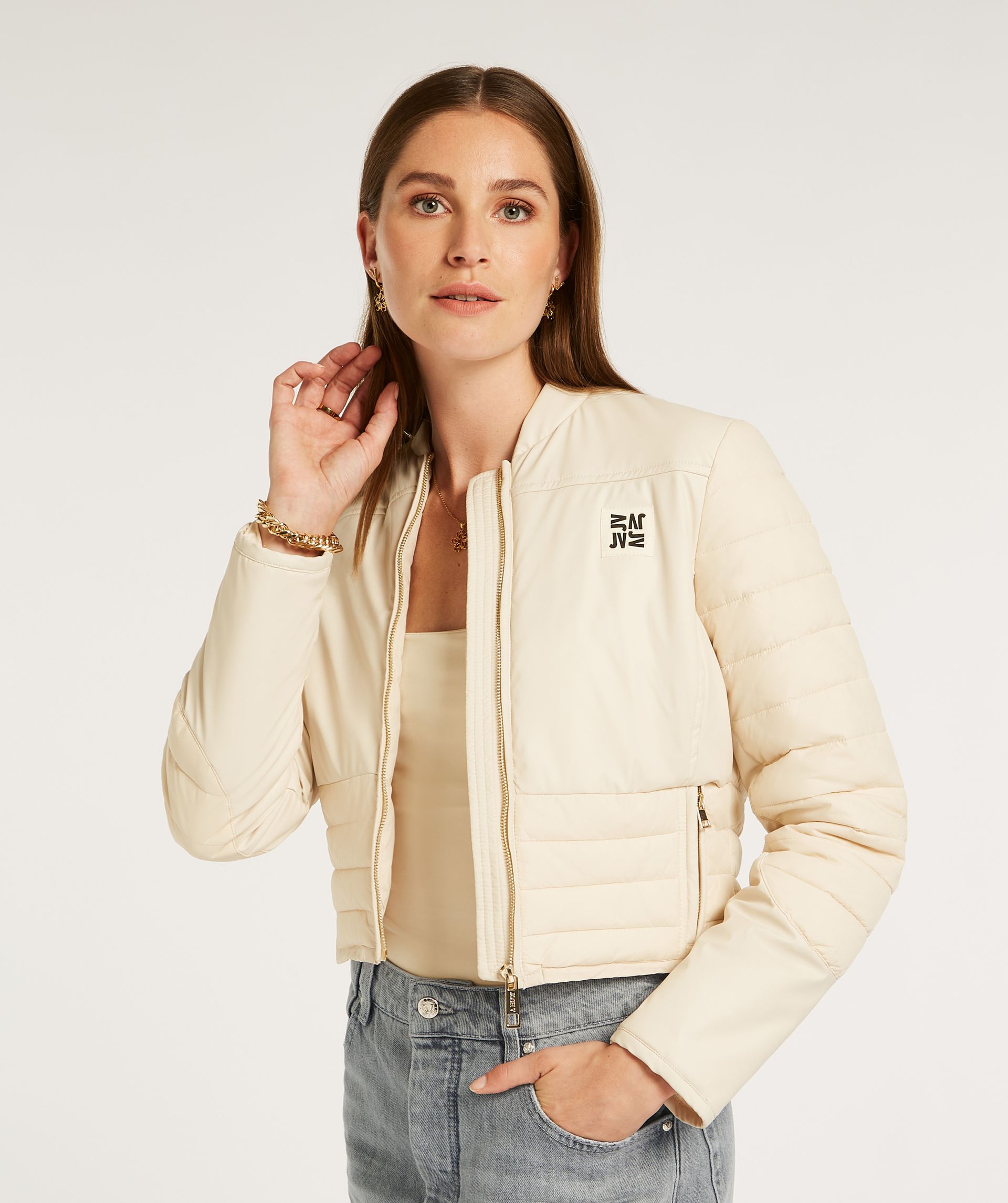 A jaqueta feminina JOSH V Toini em Cocoon White é a peça de transição perfeita. Esta jaqueta curta e justa é um item essencial da moda que você pode usar tanto em dias frios quanto quentes. A jaqueta apresenta tecido acolchoado, uma costura em V marcante nas costas e detalhes contrastantes em PU para um toque moderno. Estilo e conforto se unem nesta fina jaqueta JOSH V.