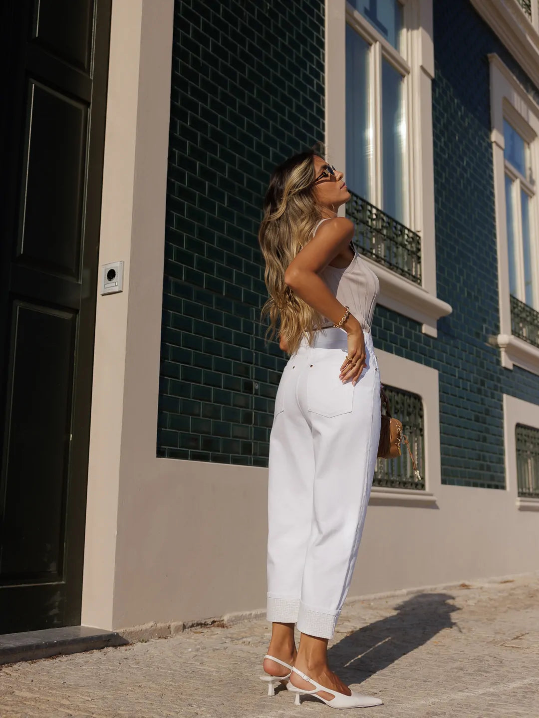 Jeans Brancos como Virola Monograma - Scripta