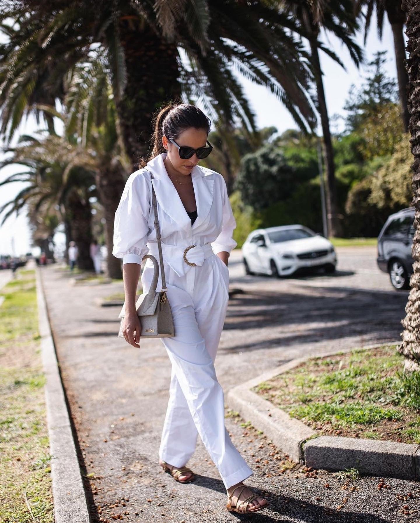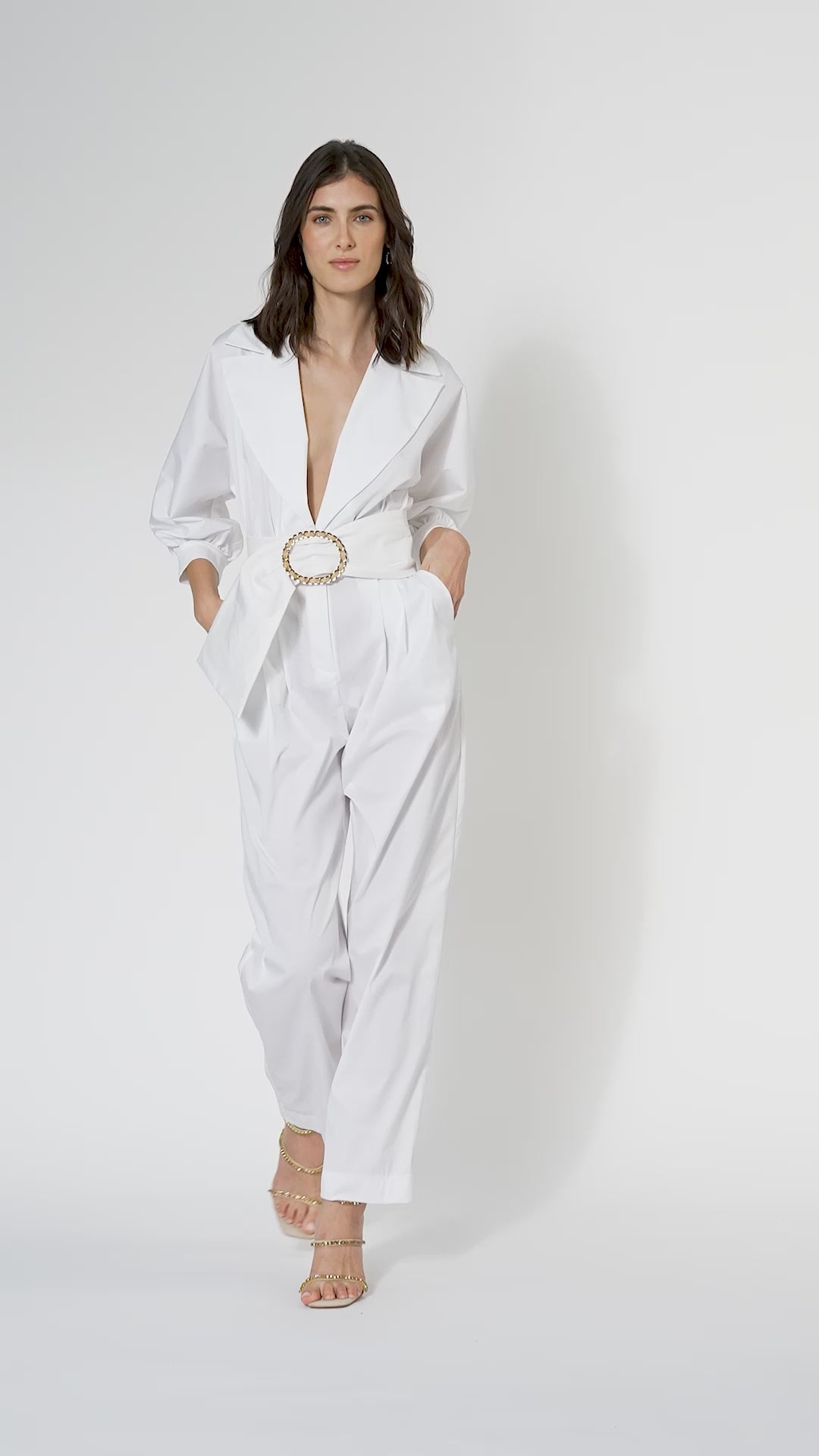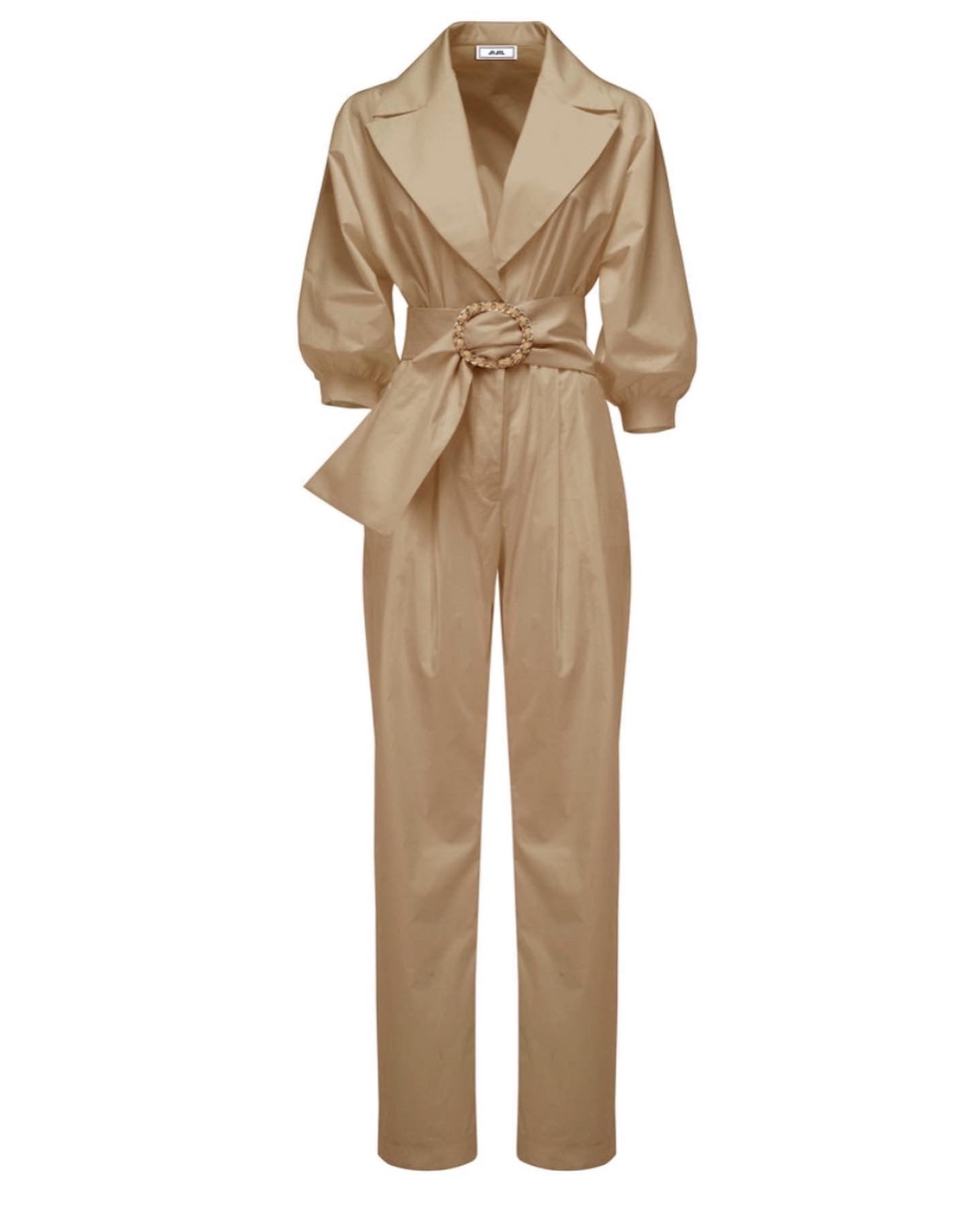 Combinaison avec ceinture réglable assortie. Col à revers et larges manches trois-quarts. Composition : 66% Coton, 31% Polyamide ou Nylon, 3% Élasthanne.