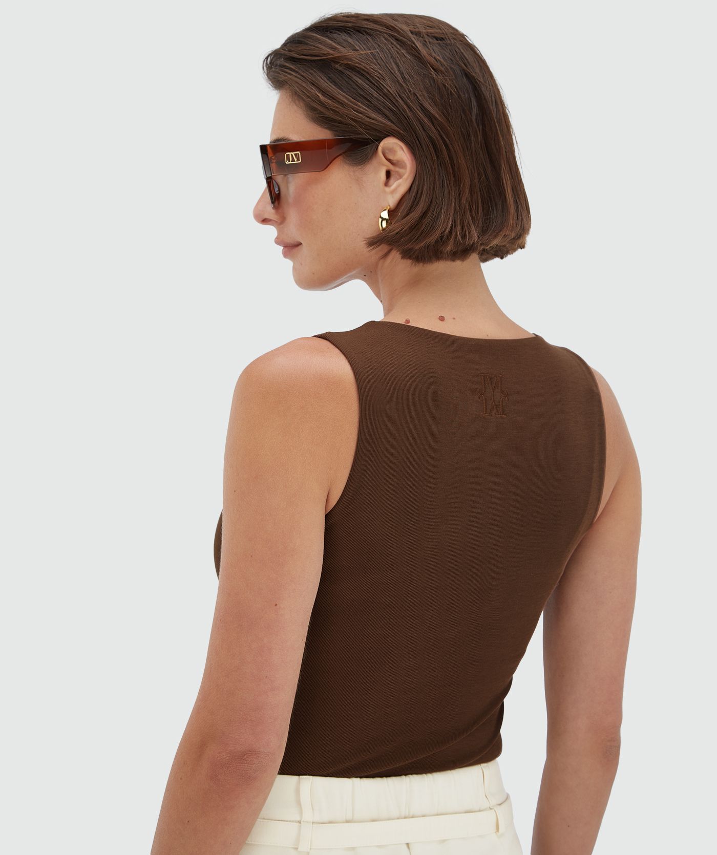 The Linde women’s top in Dark Brown is made from a cotton blend with stretch, making it very comfortable to wear. Unique details include the square neckline and the embroidered logo on the back. This dark brown slim-fit top is a perfect basic that goes with everything.